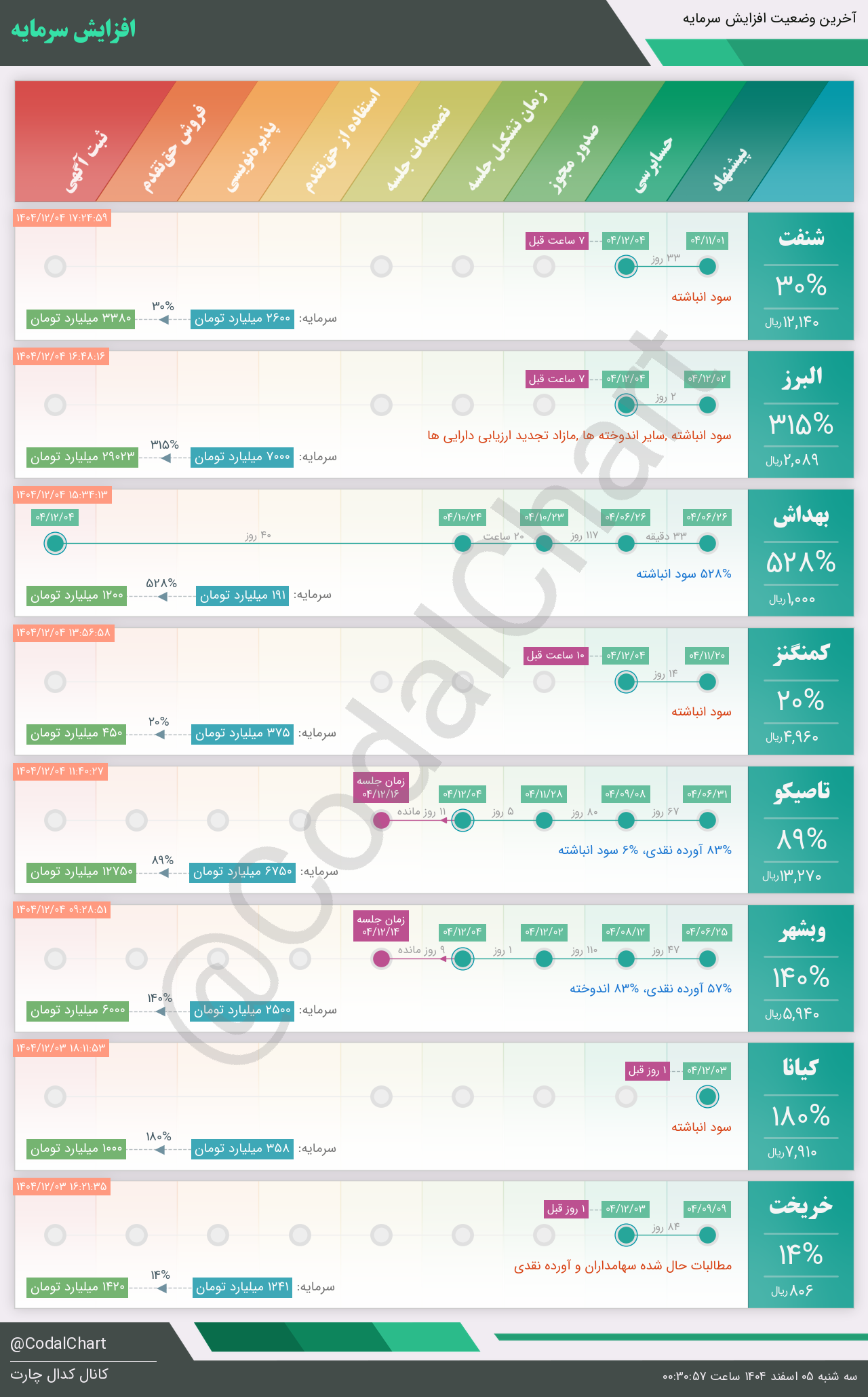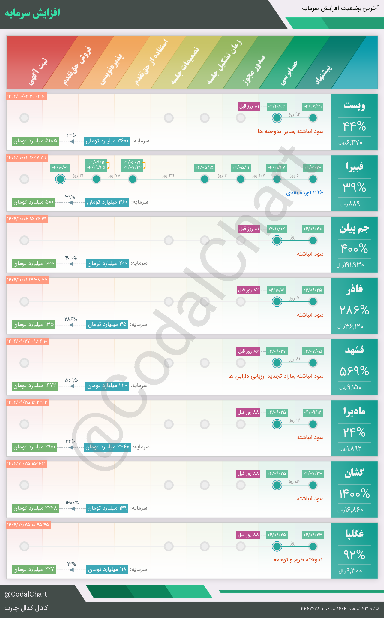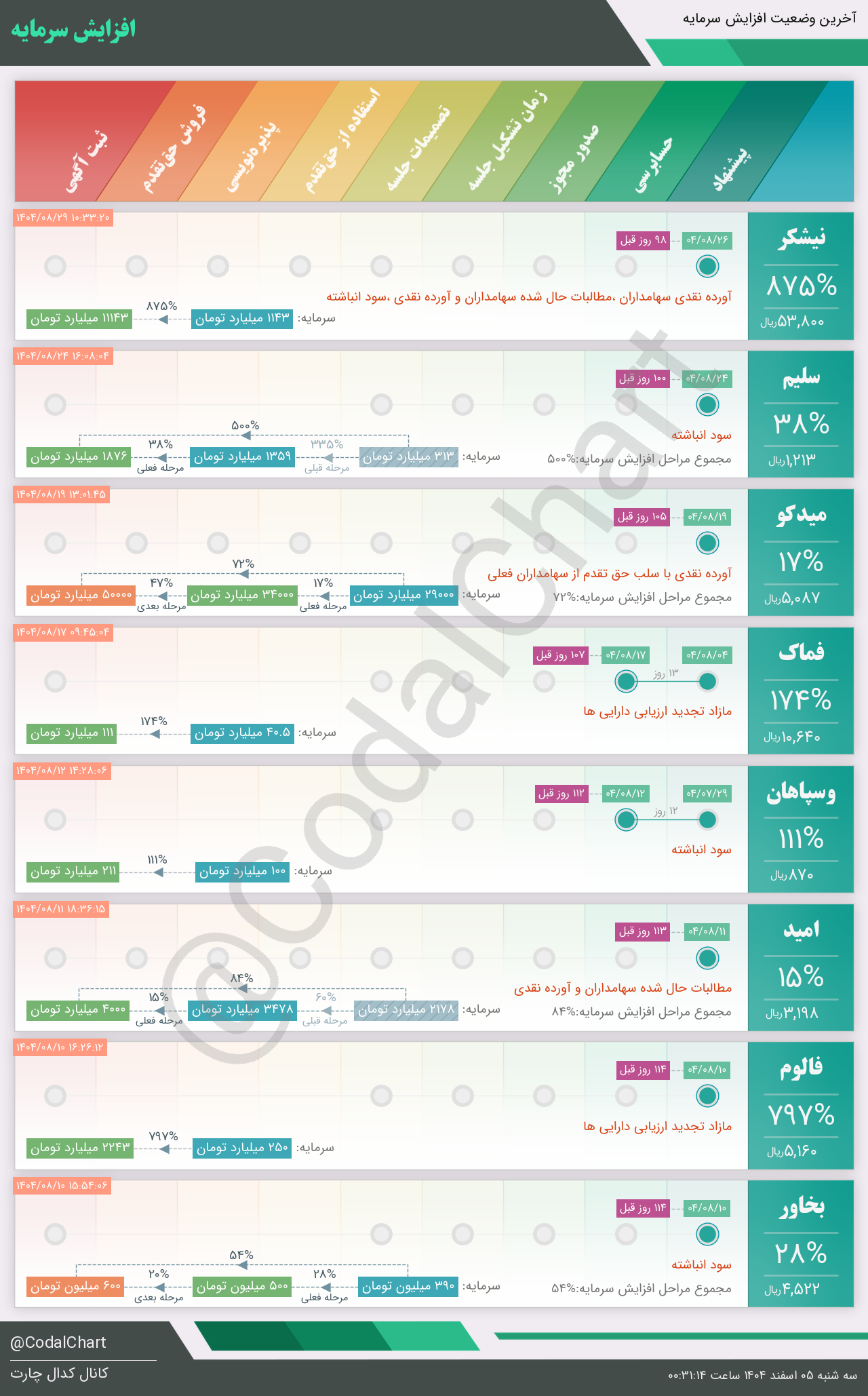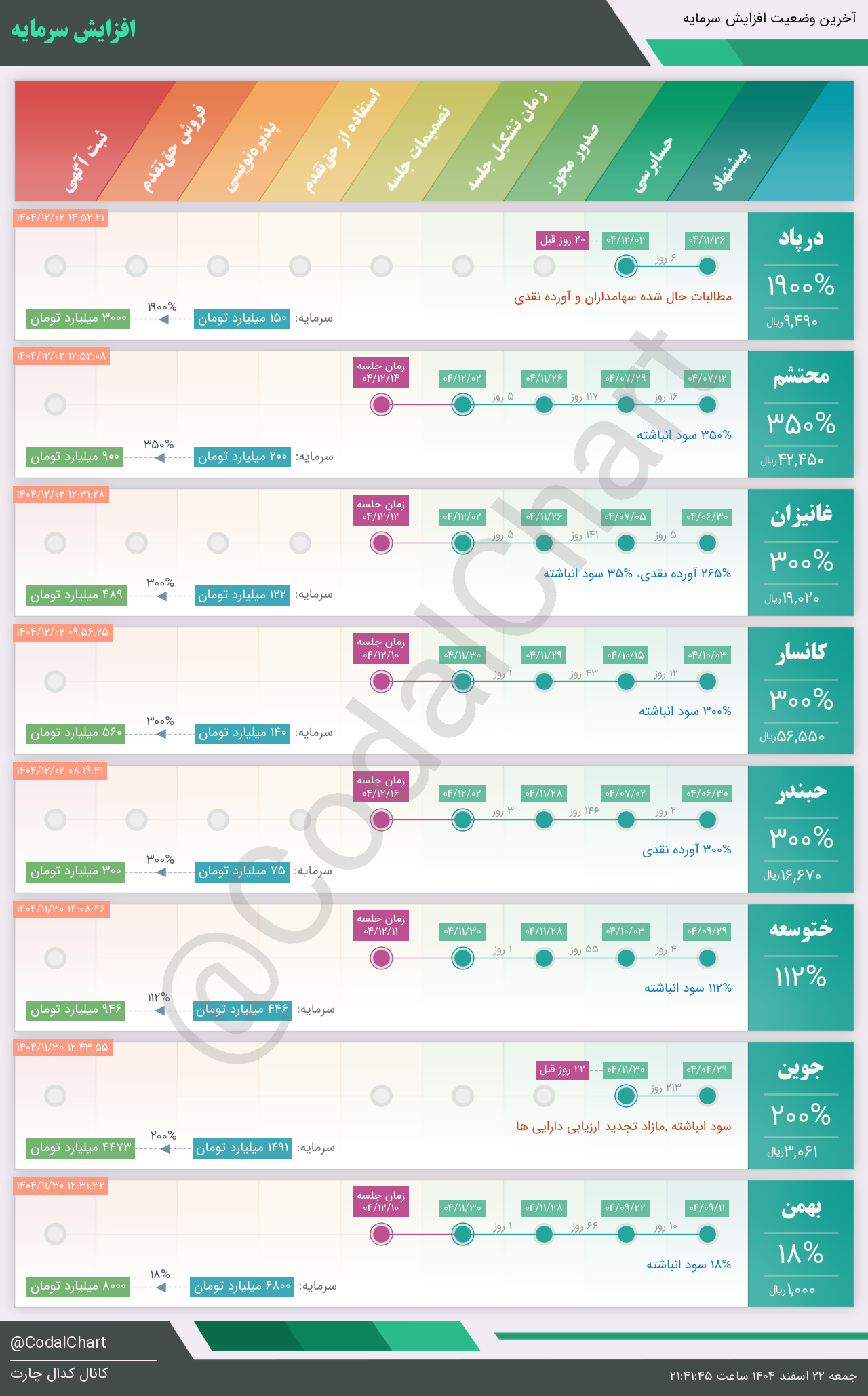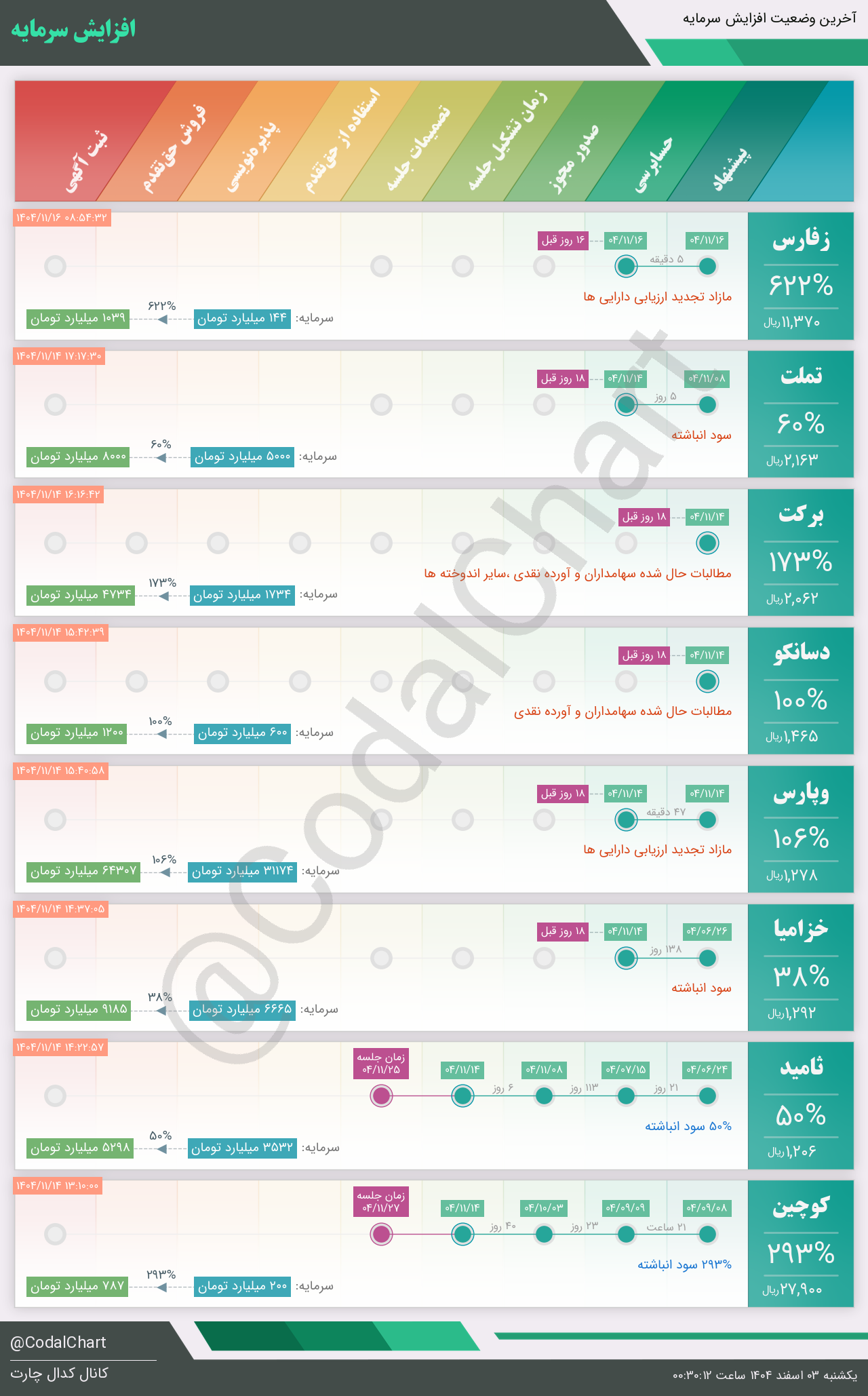 لیست زیر کمتر از یک دقیقه پس از انتشار اطلاعیه در سامانه کدال بروز میگردد.