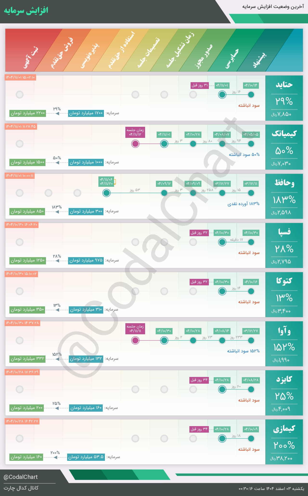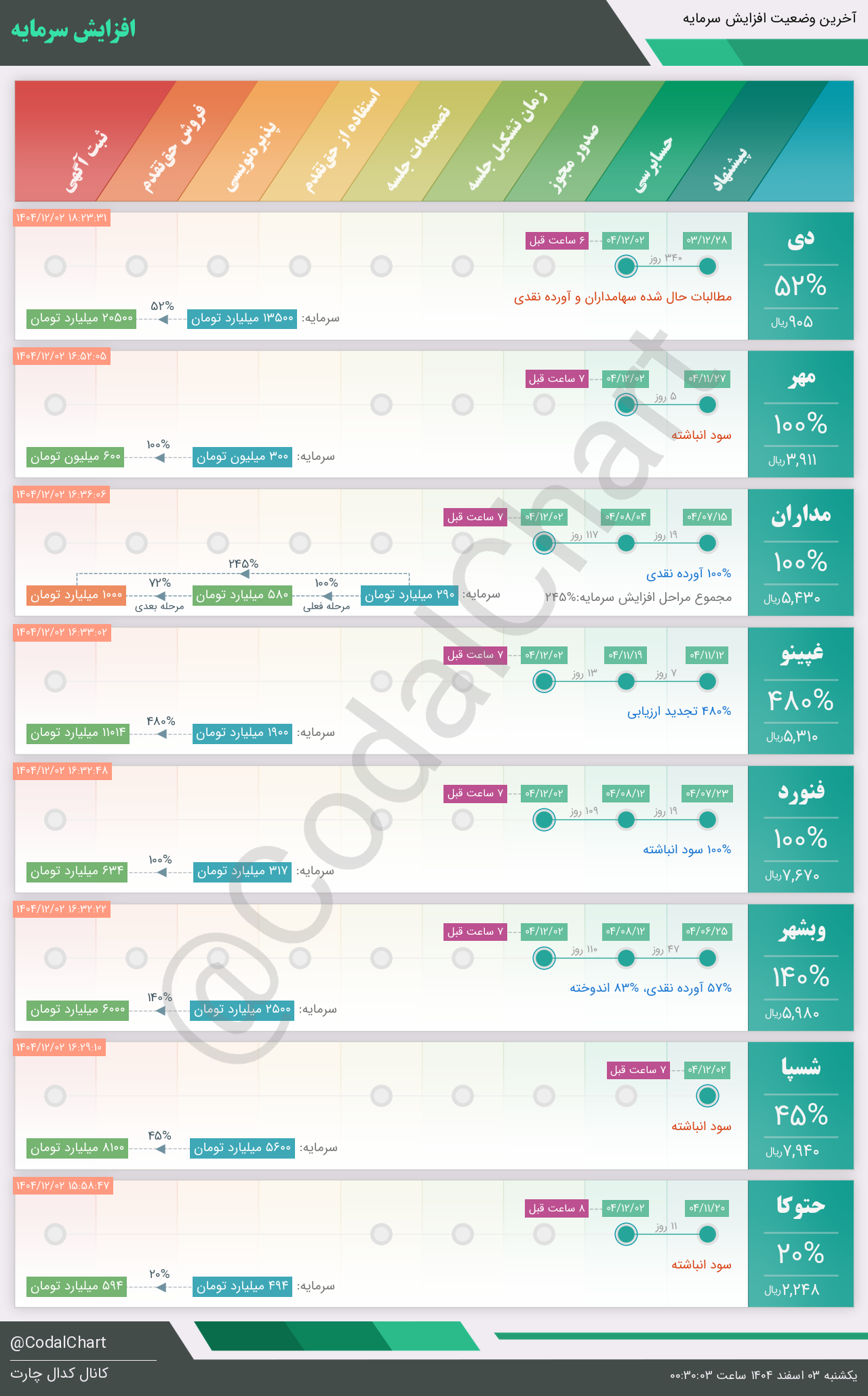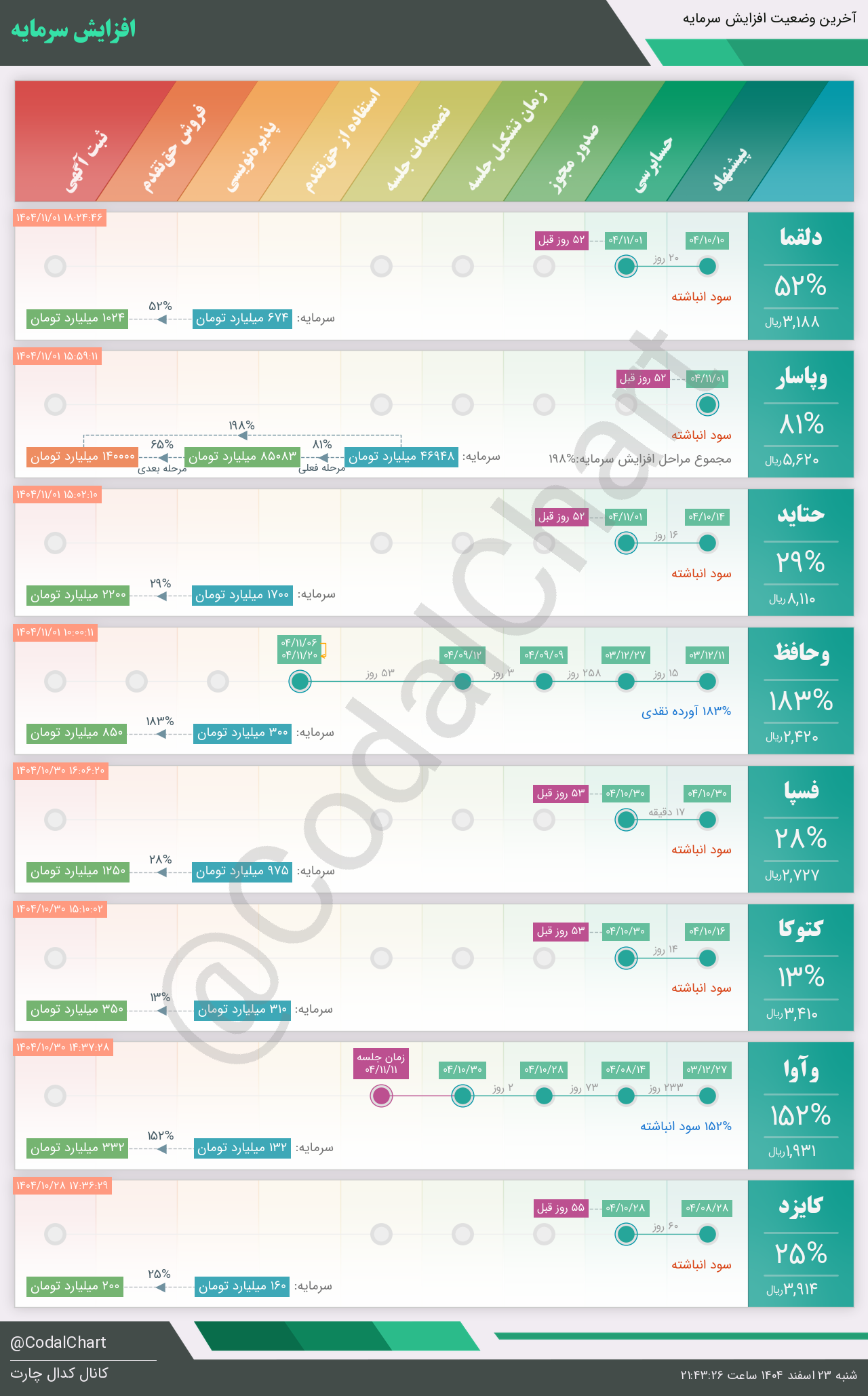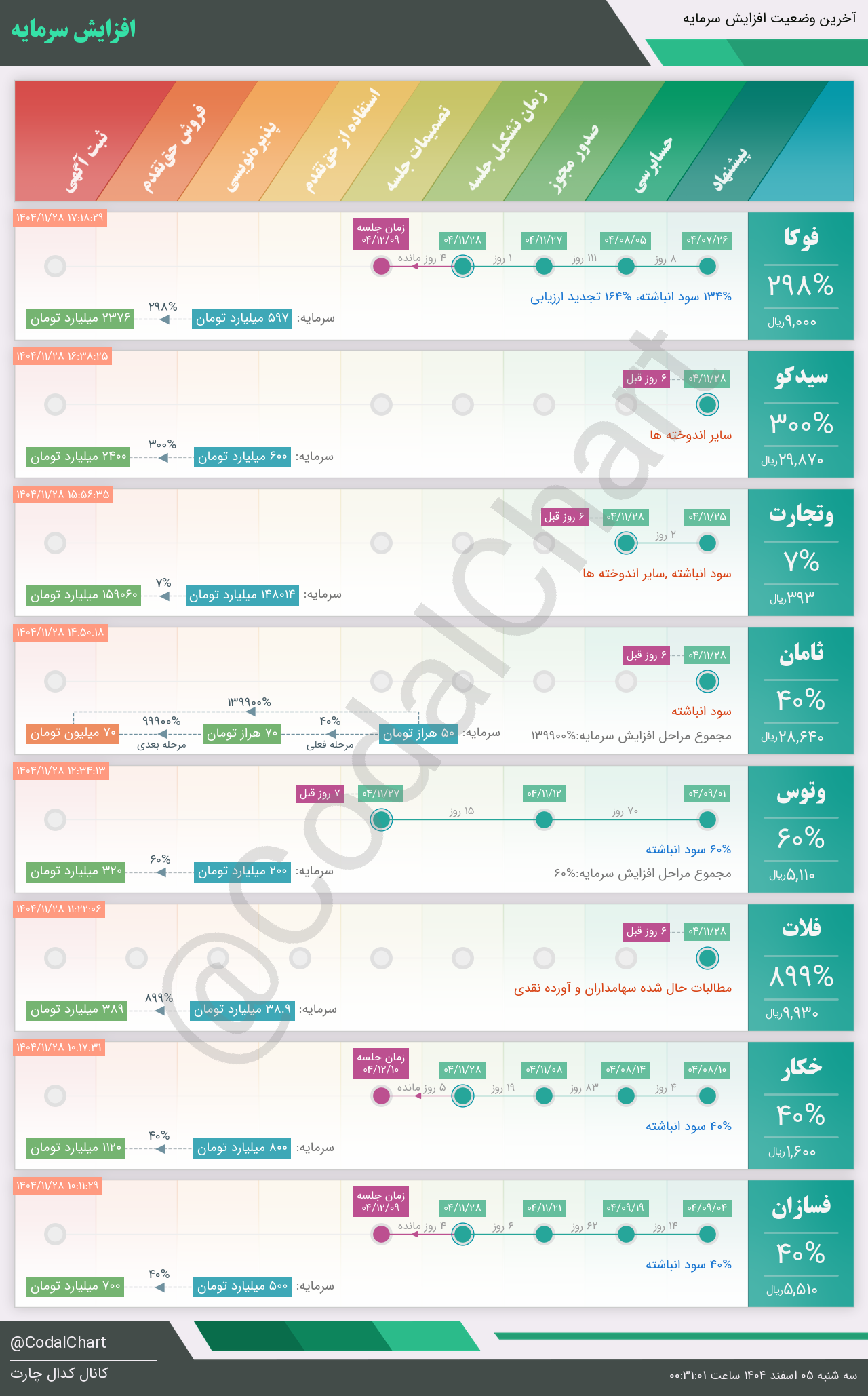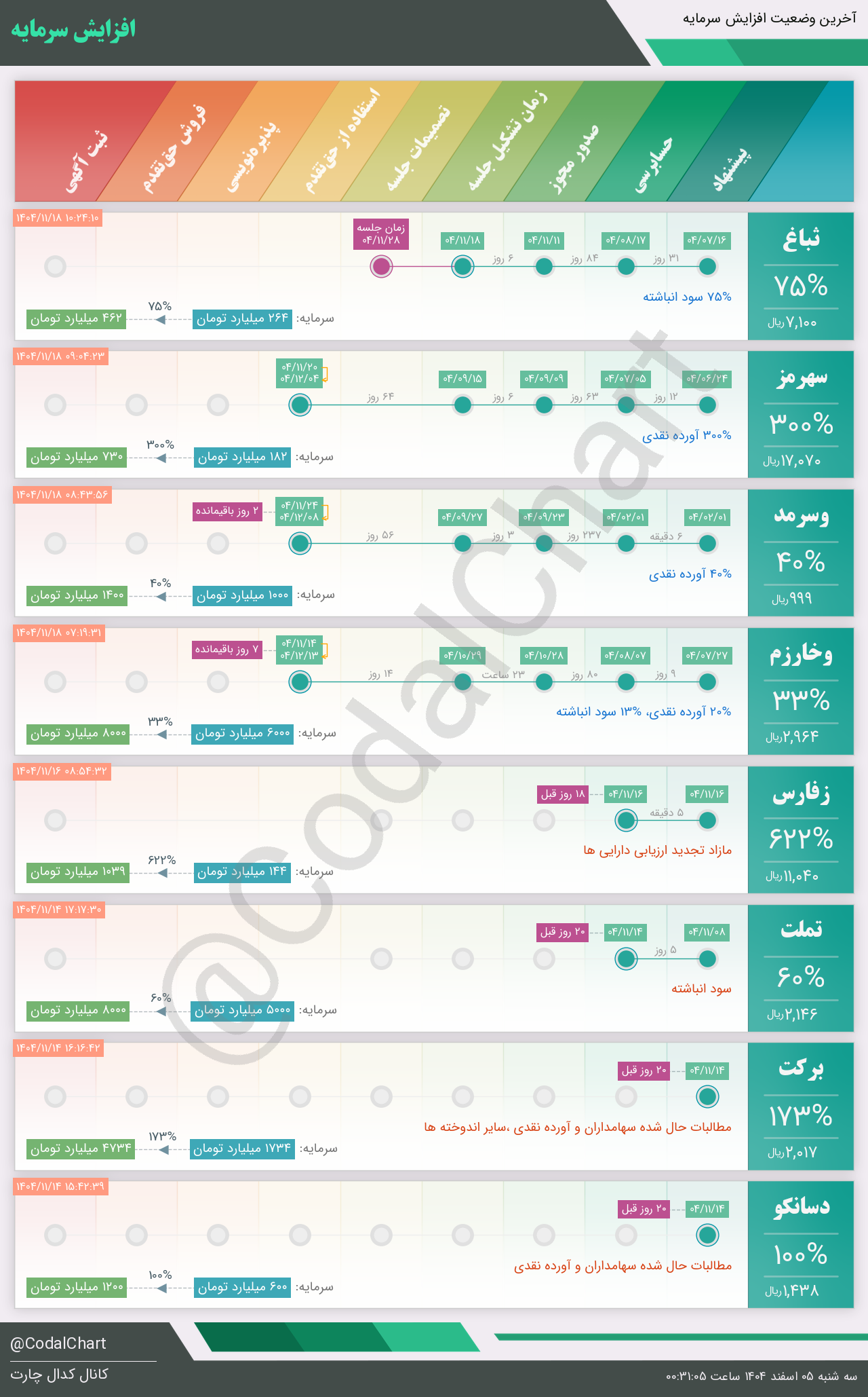 لیست زیر کمتر از یک دقیقه پس از انتشار اطلاعیه در سامانه کدال بروز میگردد.