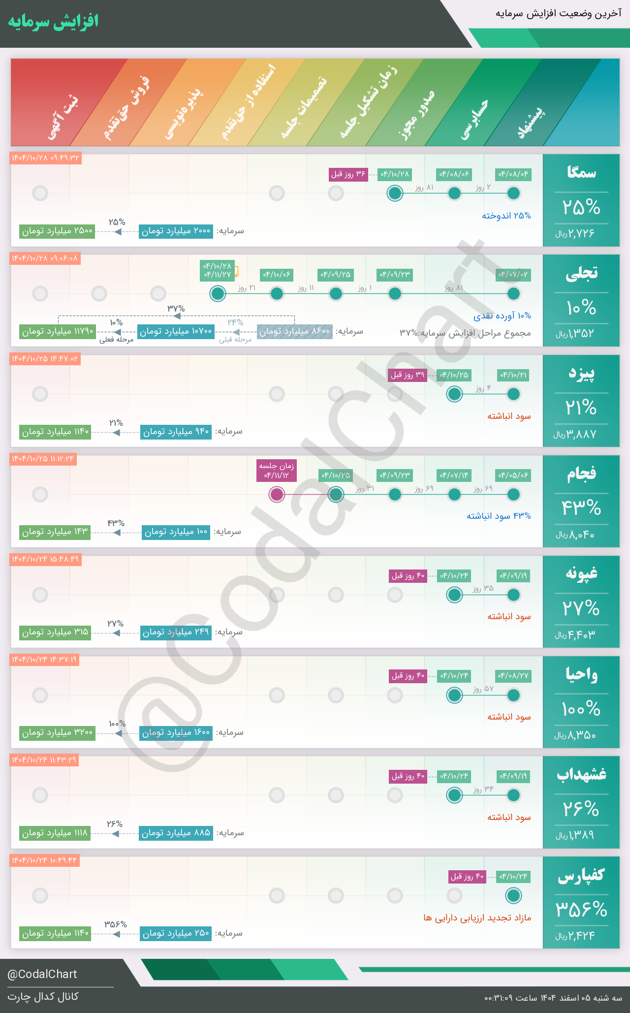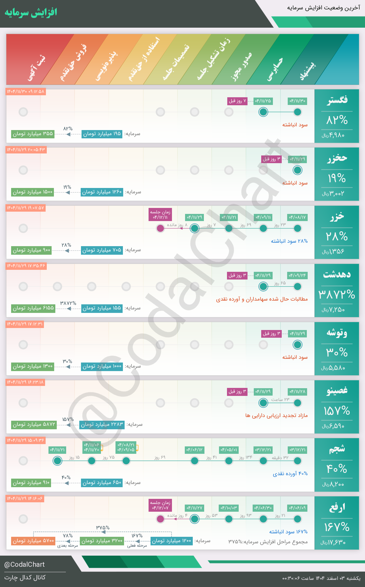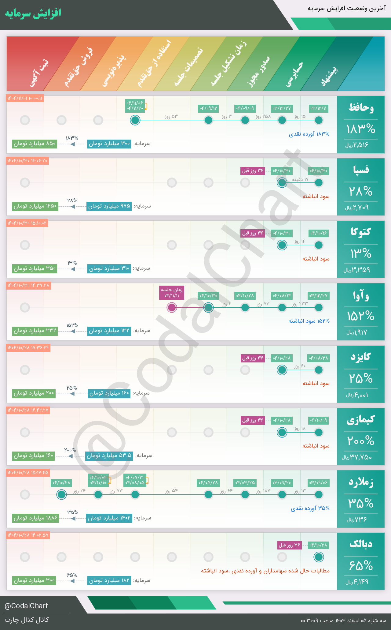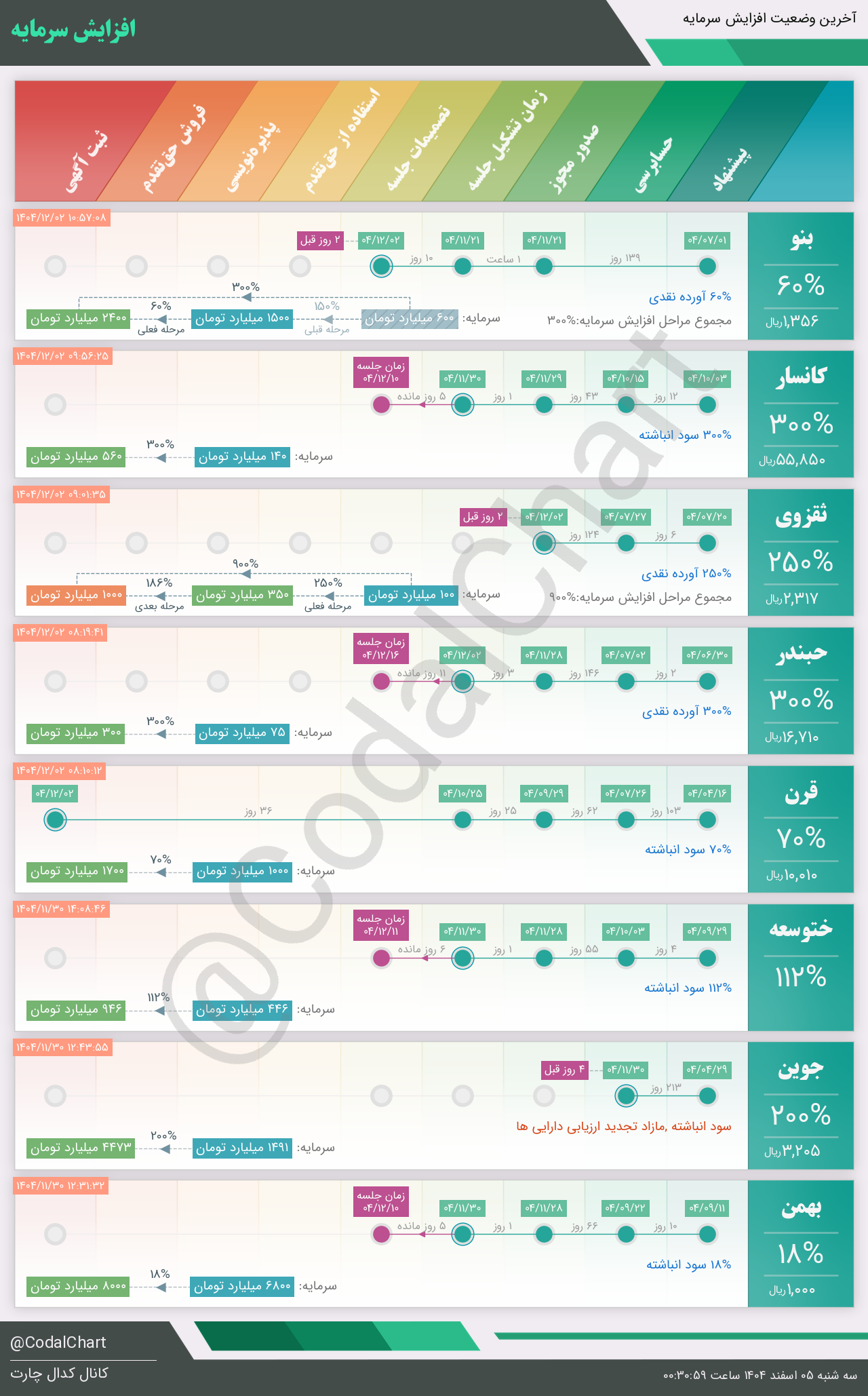 لیست زیر کمتر از یک دقیقه پس از انتشار اطلاعیه در سامانه کدال بروز میگردد.
