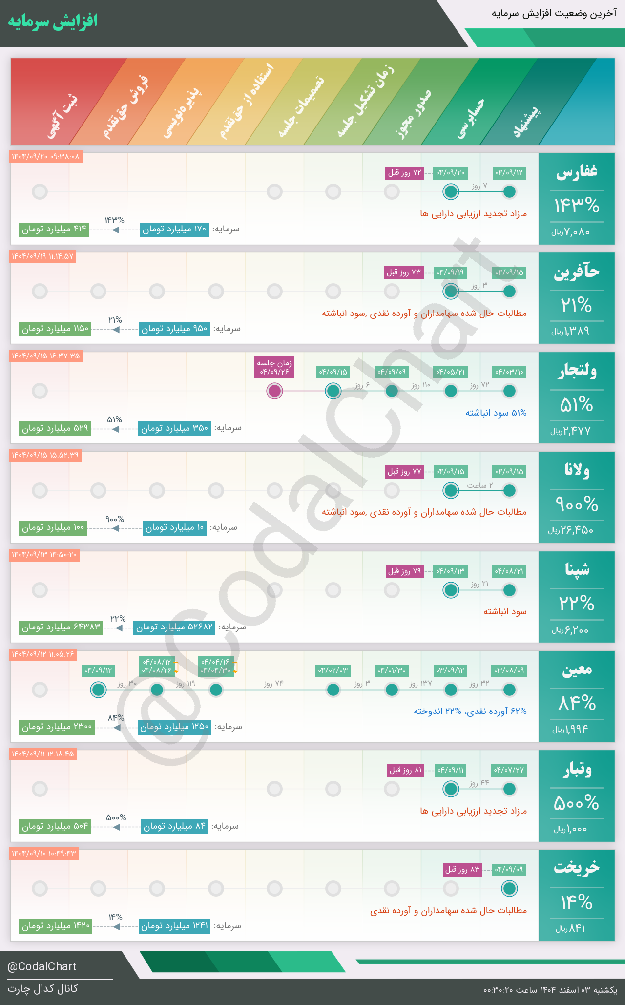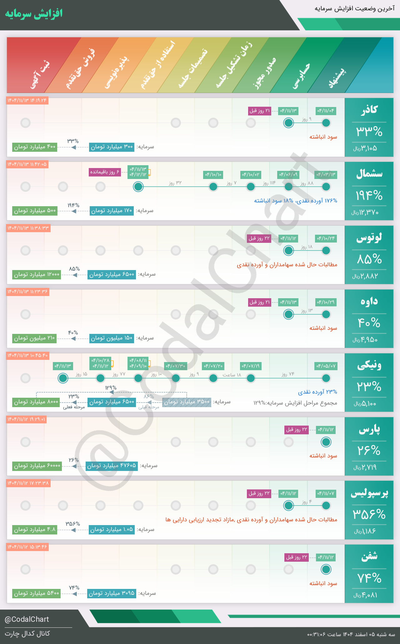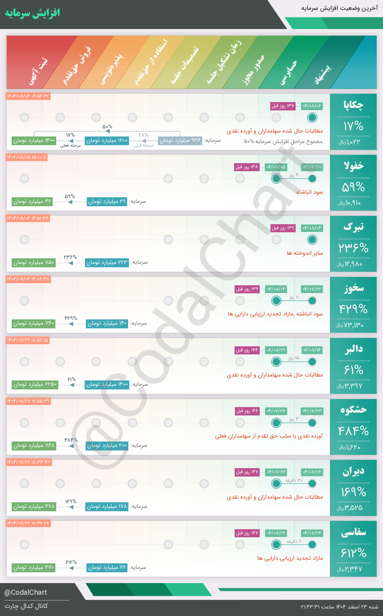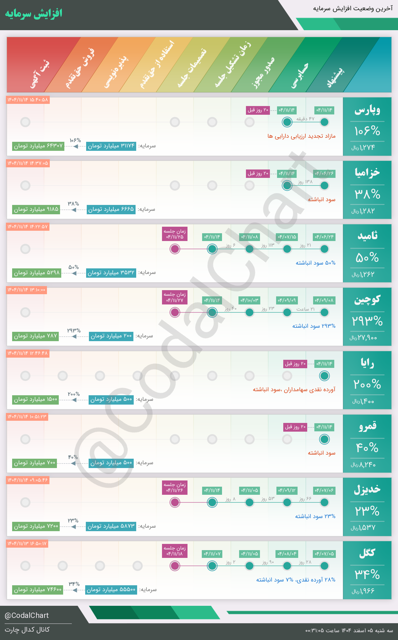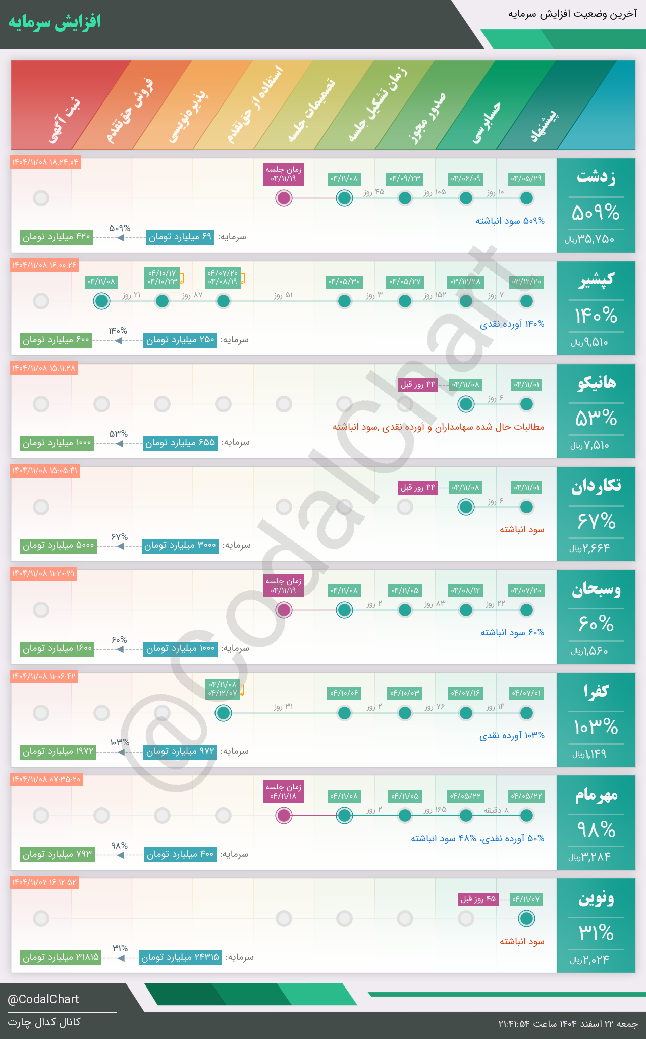 لیست زیر کمتر از یک دقیقه پس از انتشار اطلاعیه در سامانه کدال بروز میگردد.