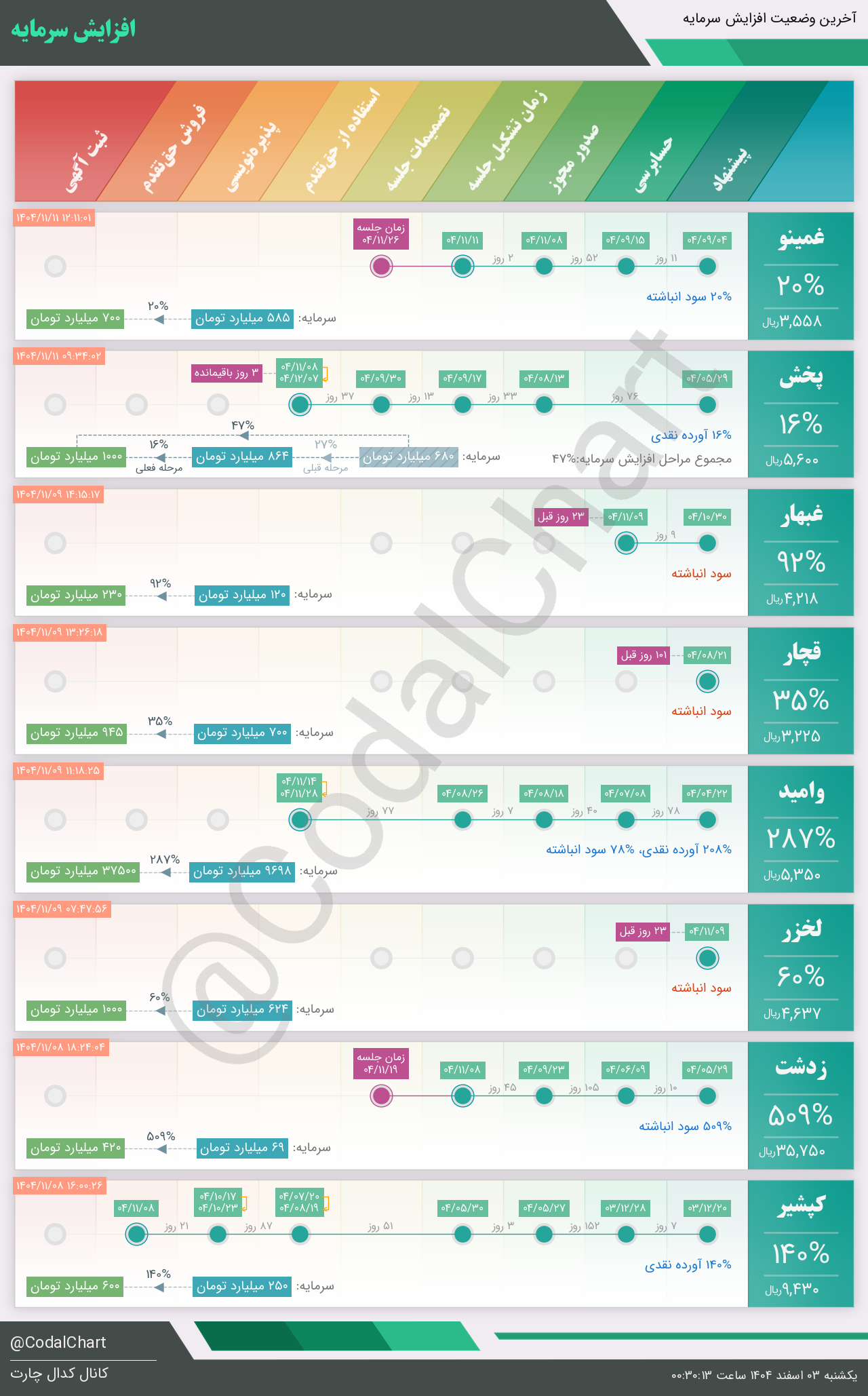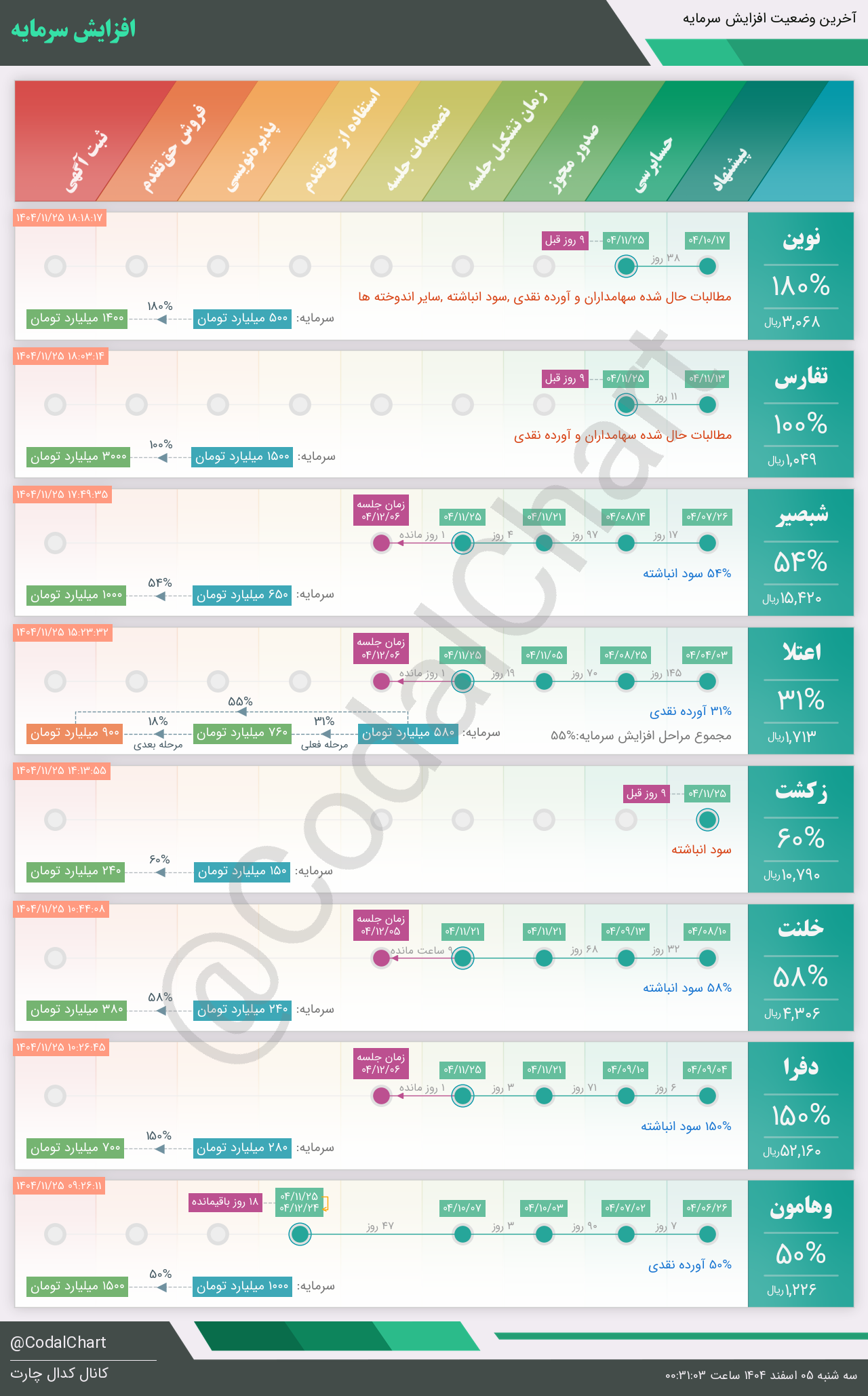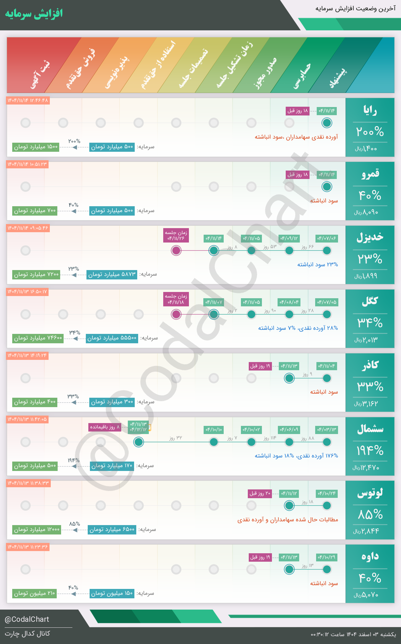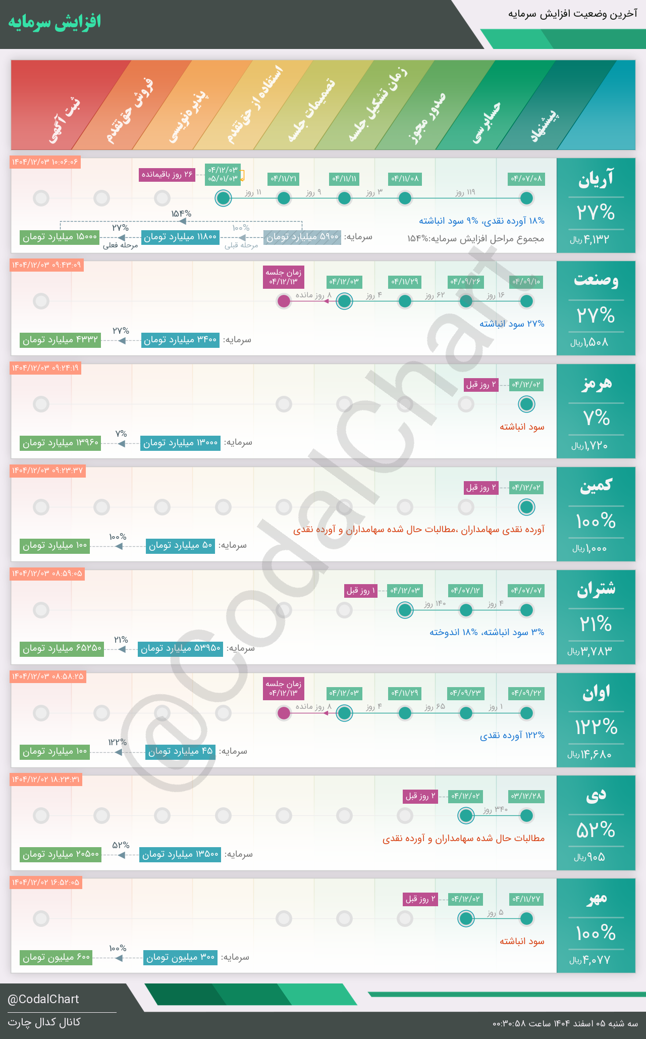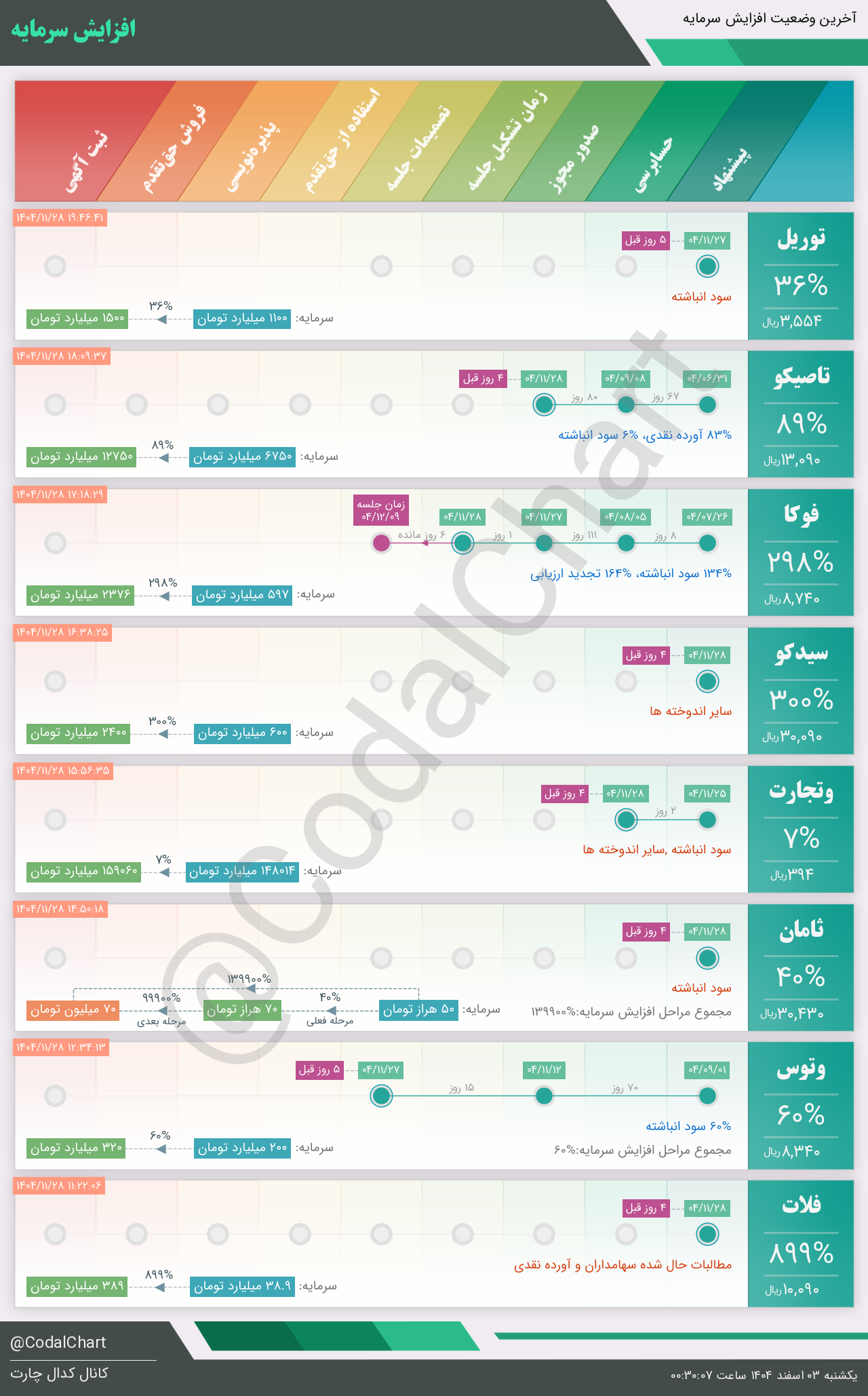 لیست زیر کمتر از یک دقیقه پس از انتشار اطلاعیه در سامانه کدال بروز میگردد.