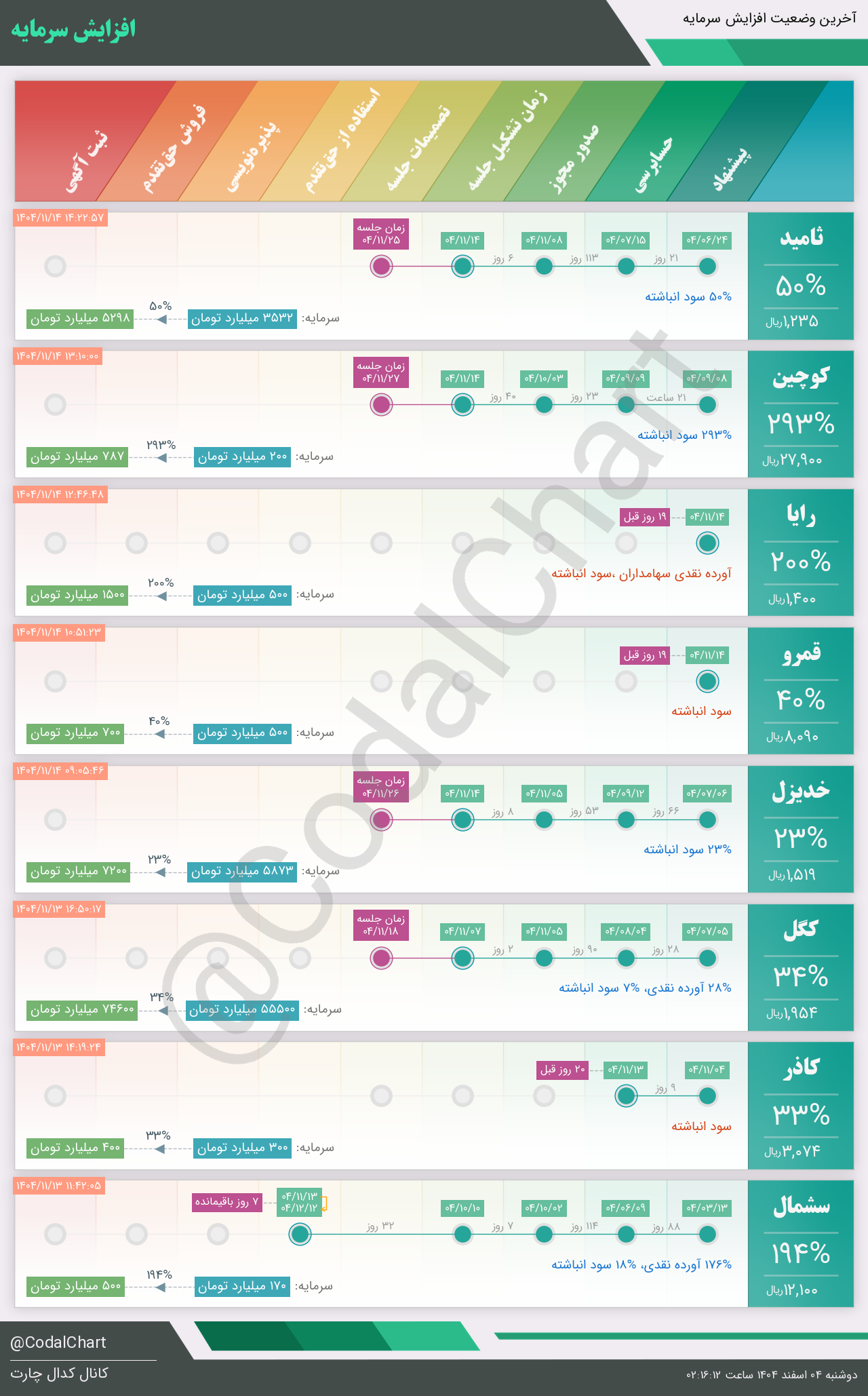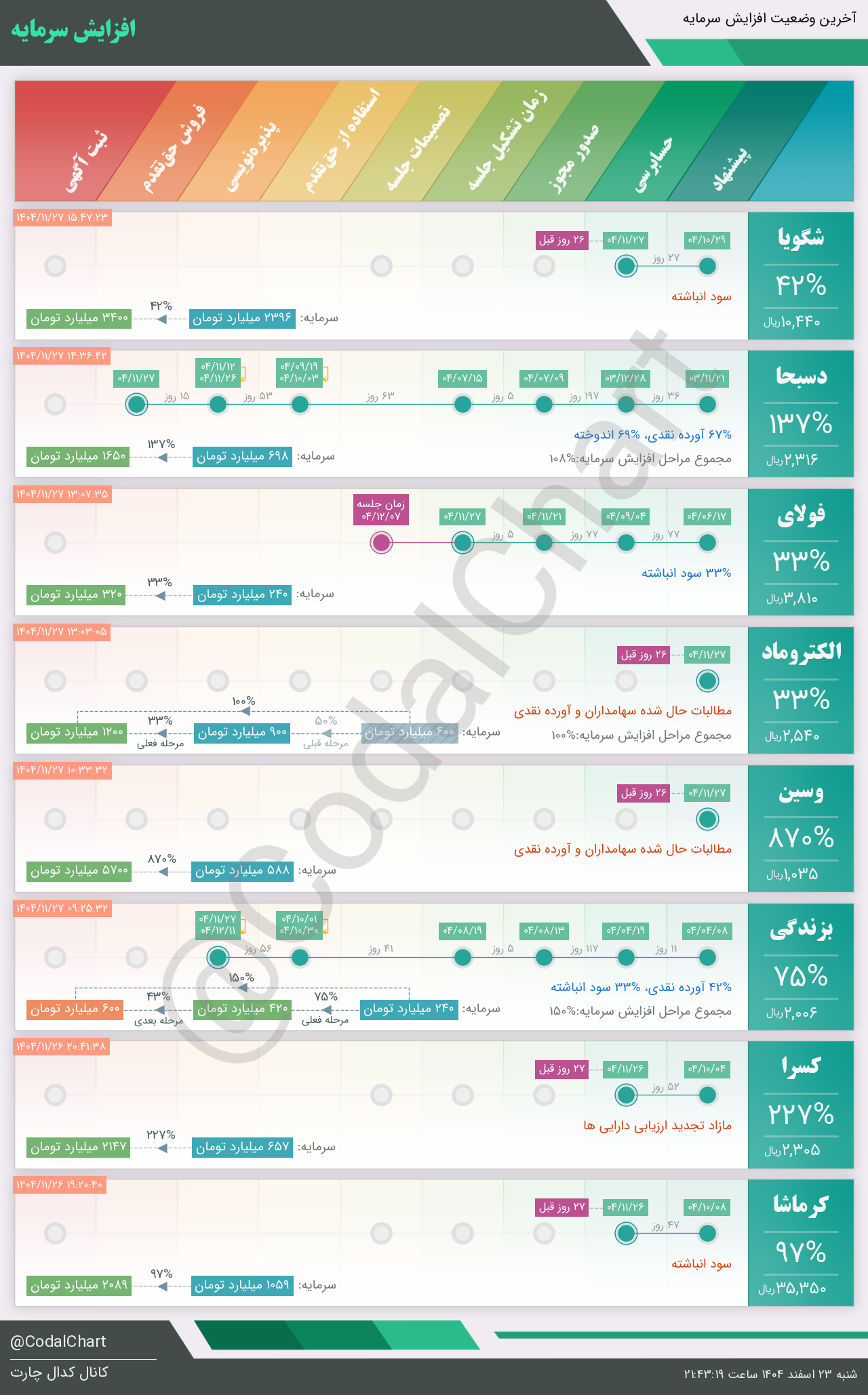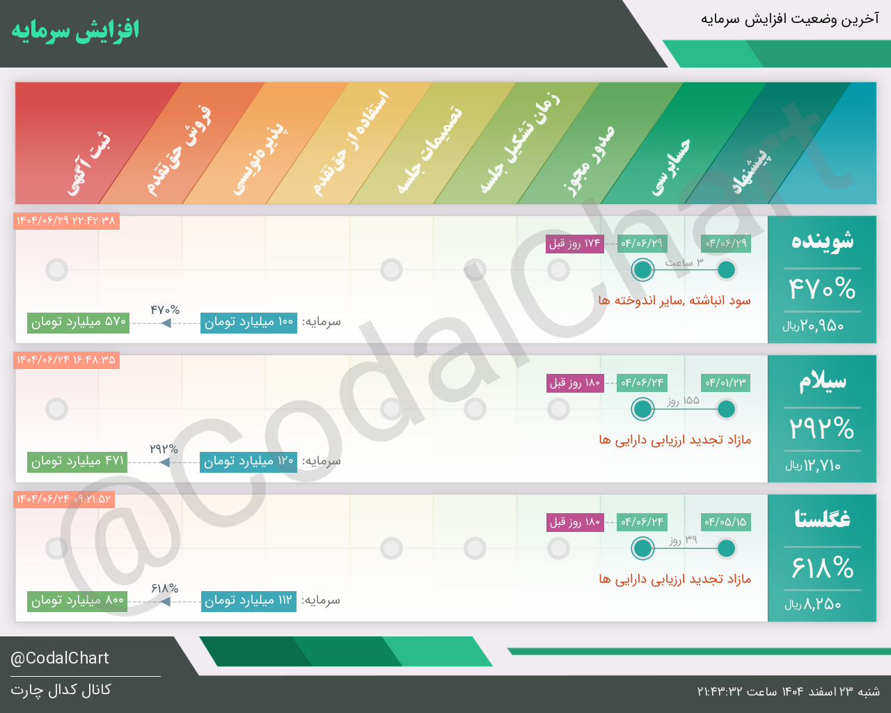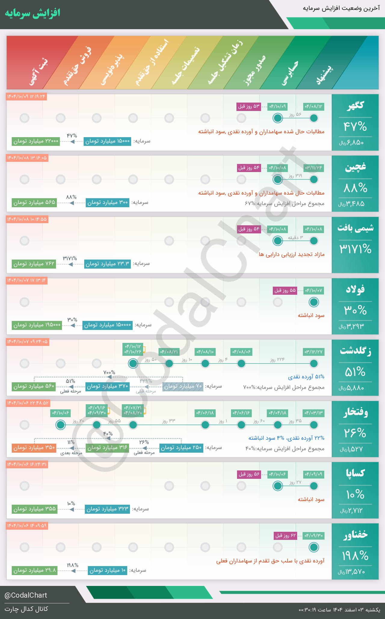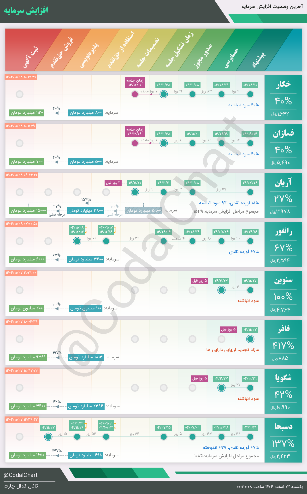لیست زیر کمتر از یک دقیقه پس از انتشار اطلاعیه در سامانه کدال بروز میگردد.