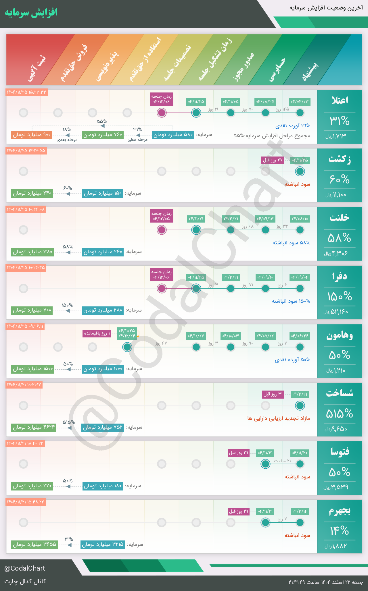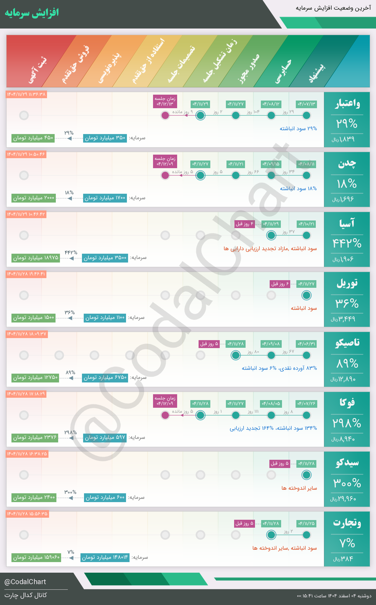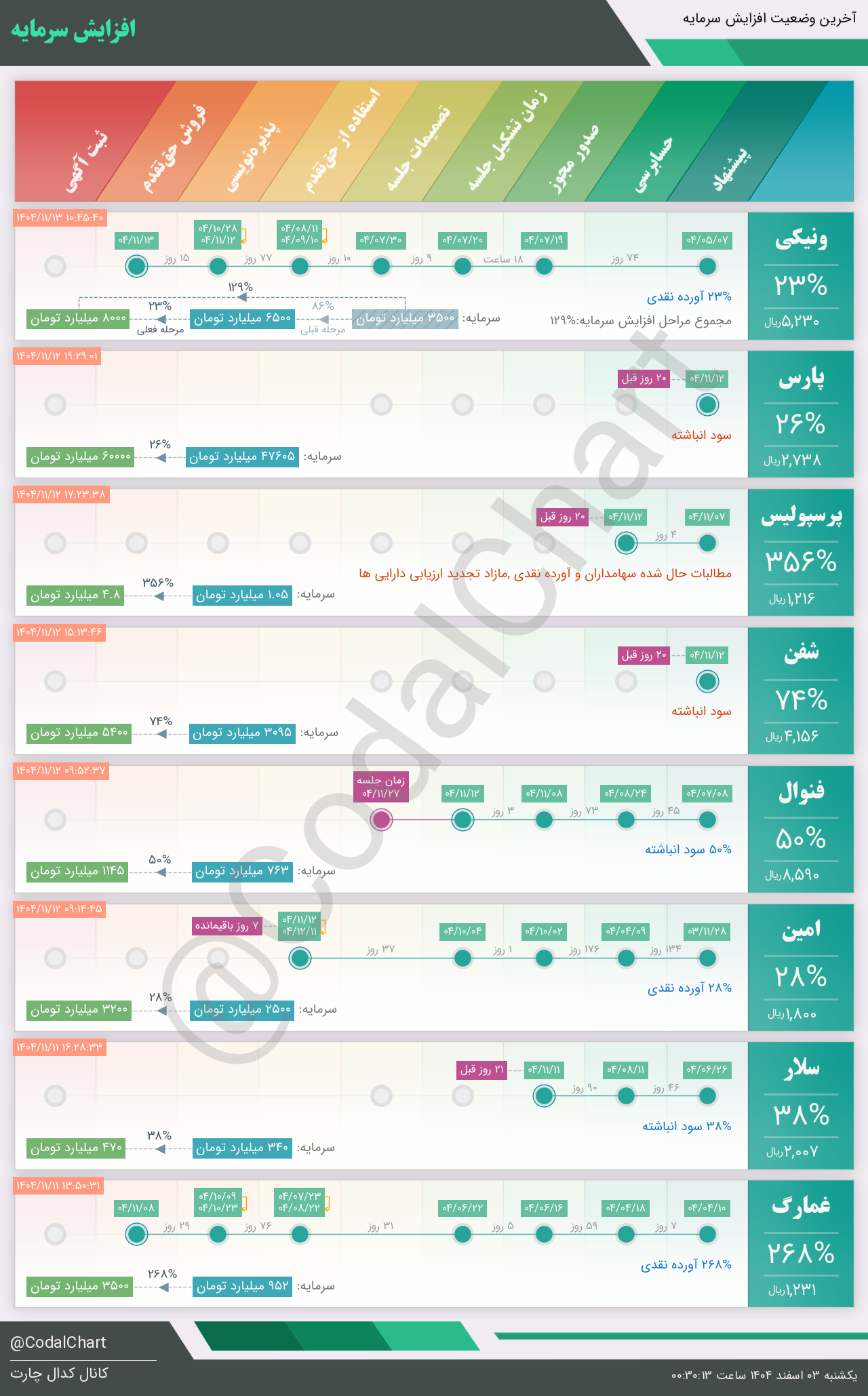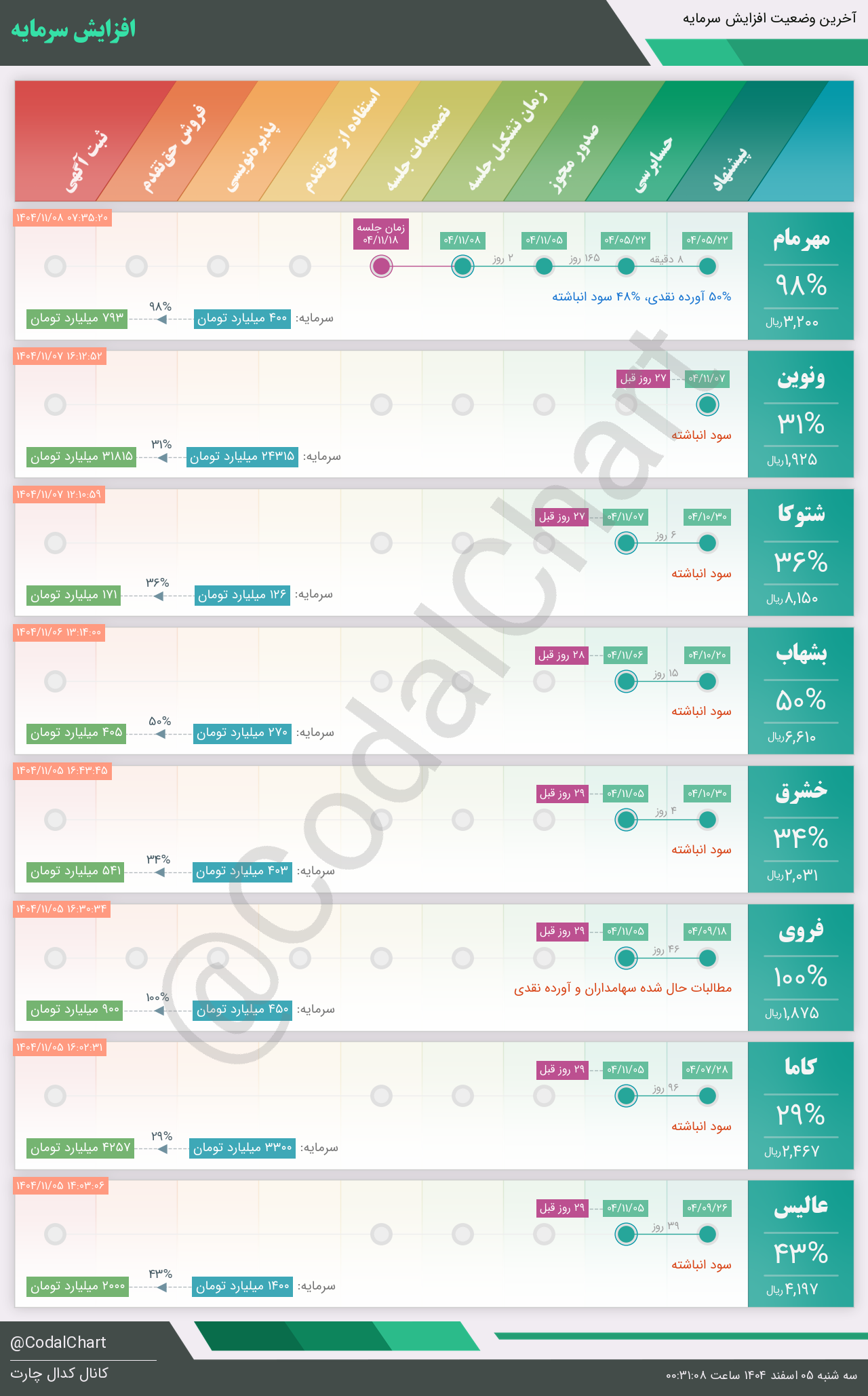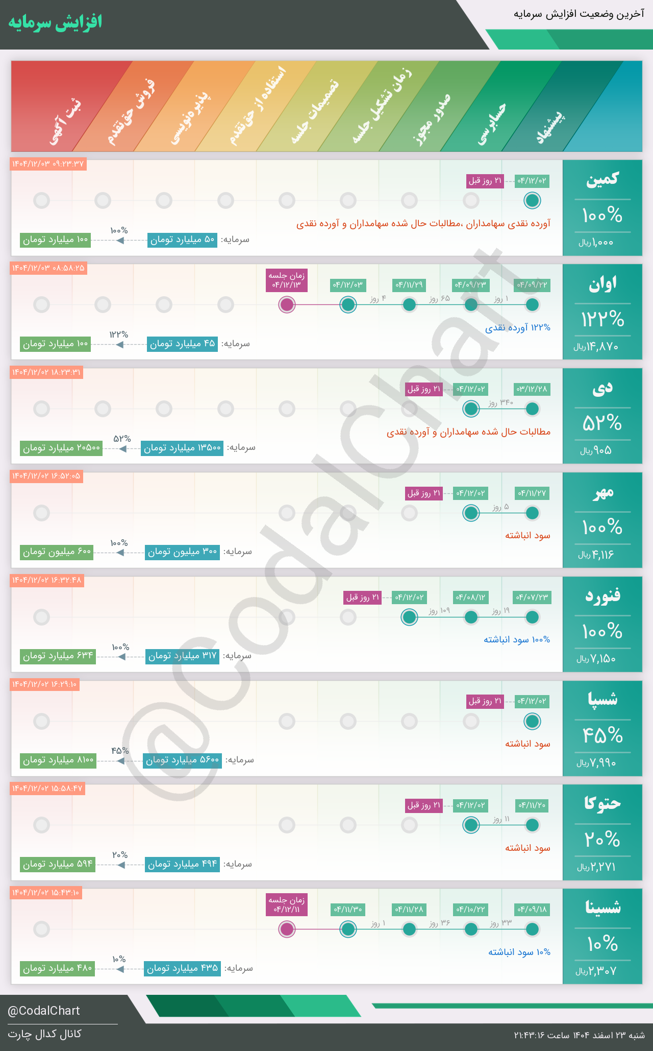 لیست زیر کمتر از یک دقیقه پس از انتشار اطلاعیه در سامانه کدال بروز میگردد.
