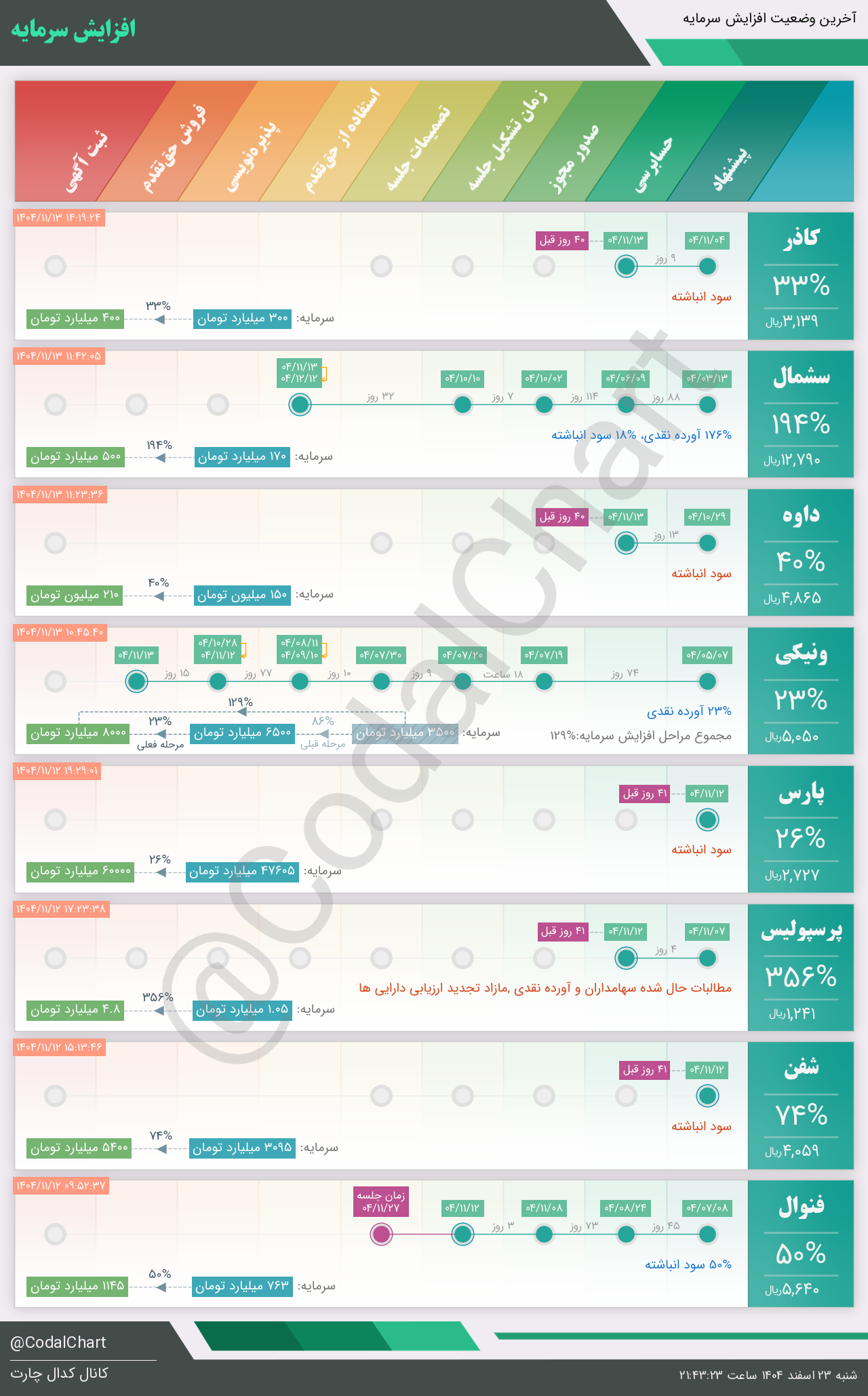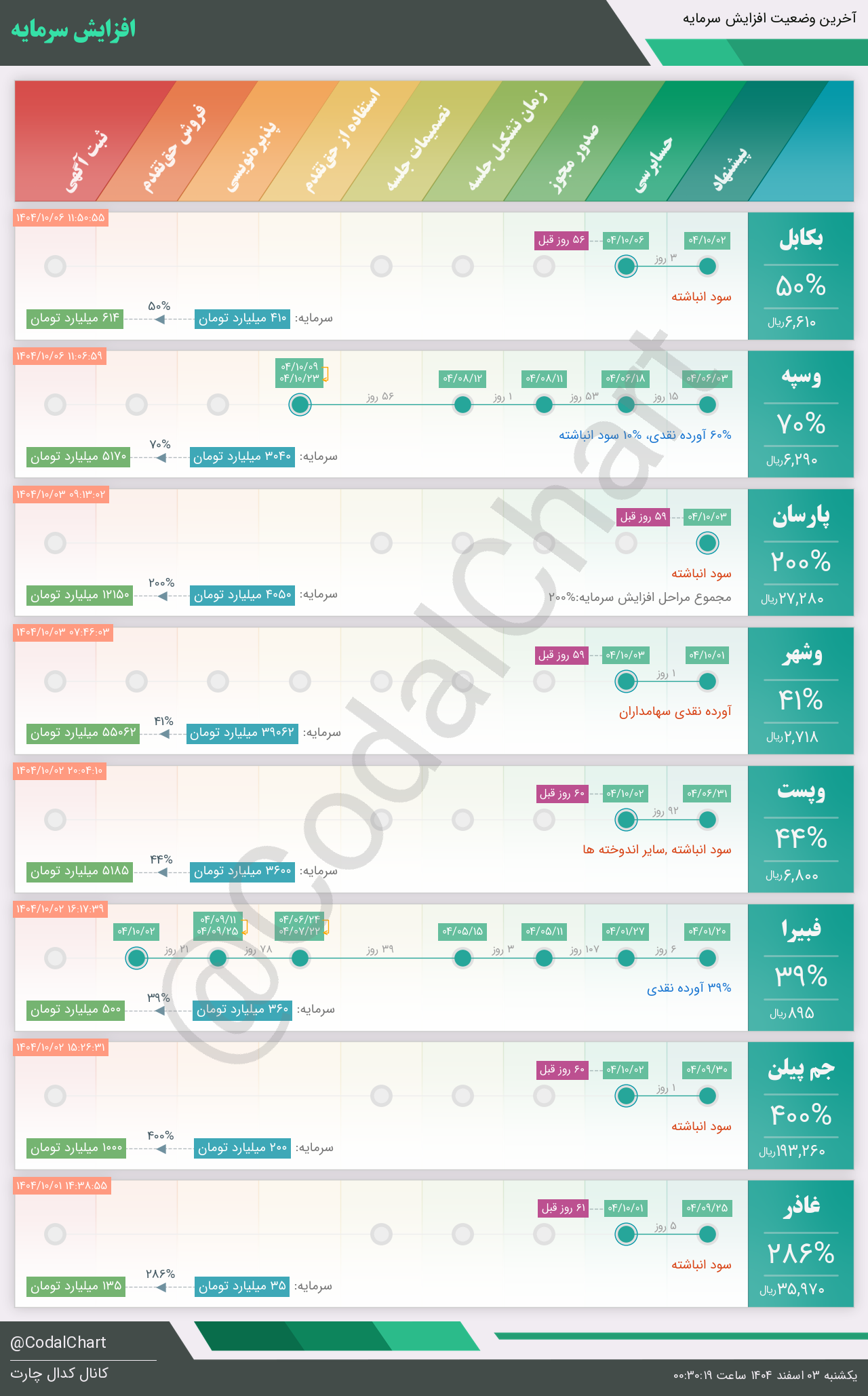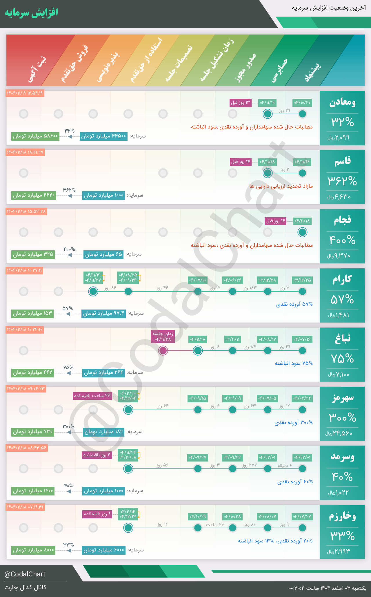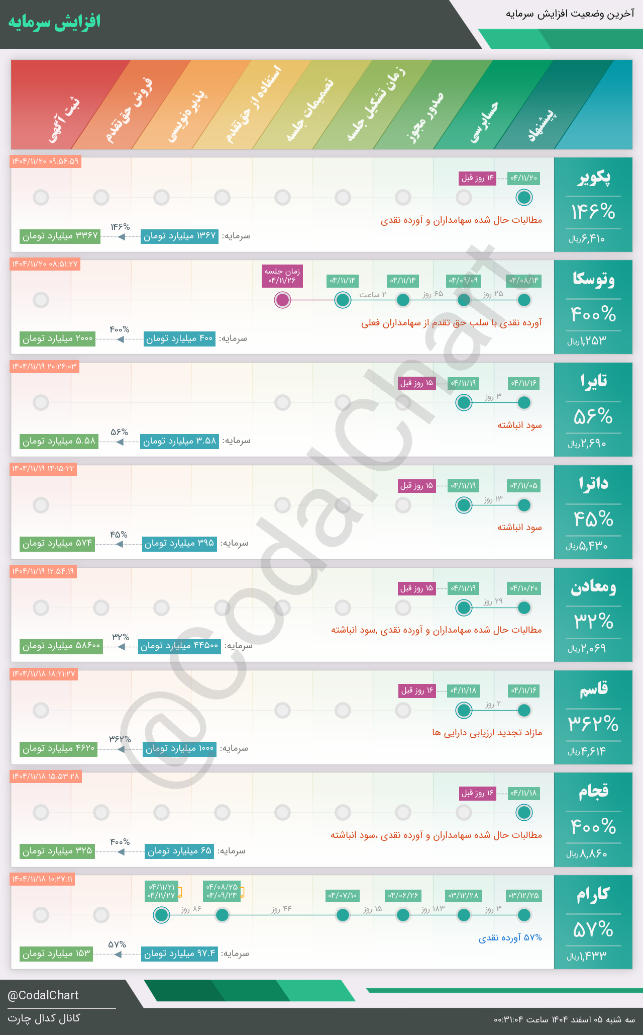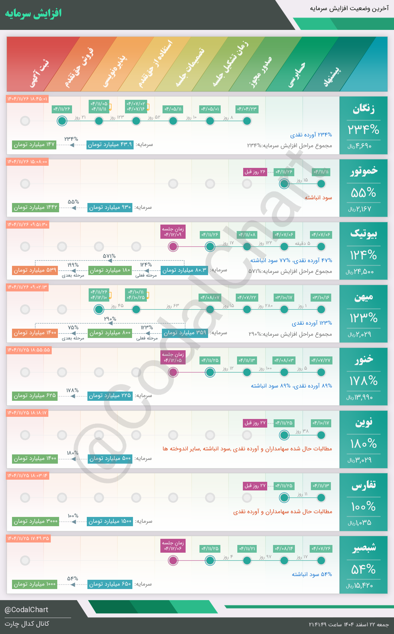 لیست زیر کمتر از یک دقیقه پس از انتشار اطلاعیه در سامانه کدال بروز میگردد.