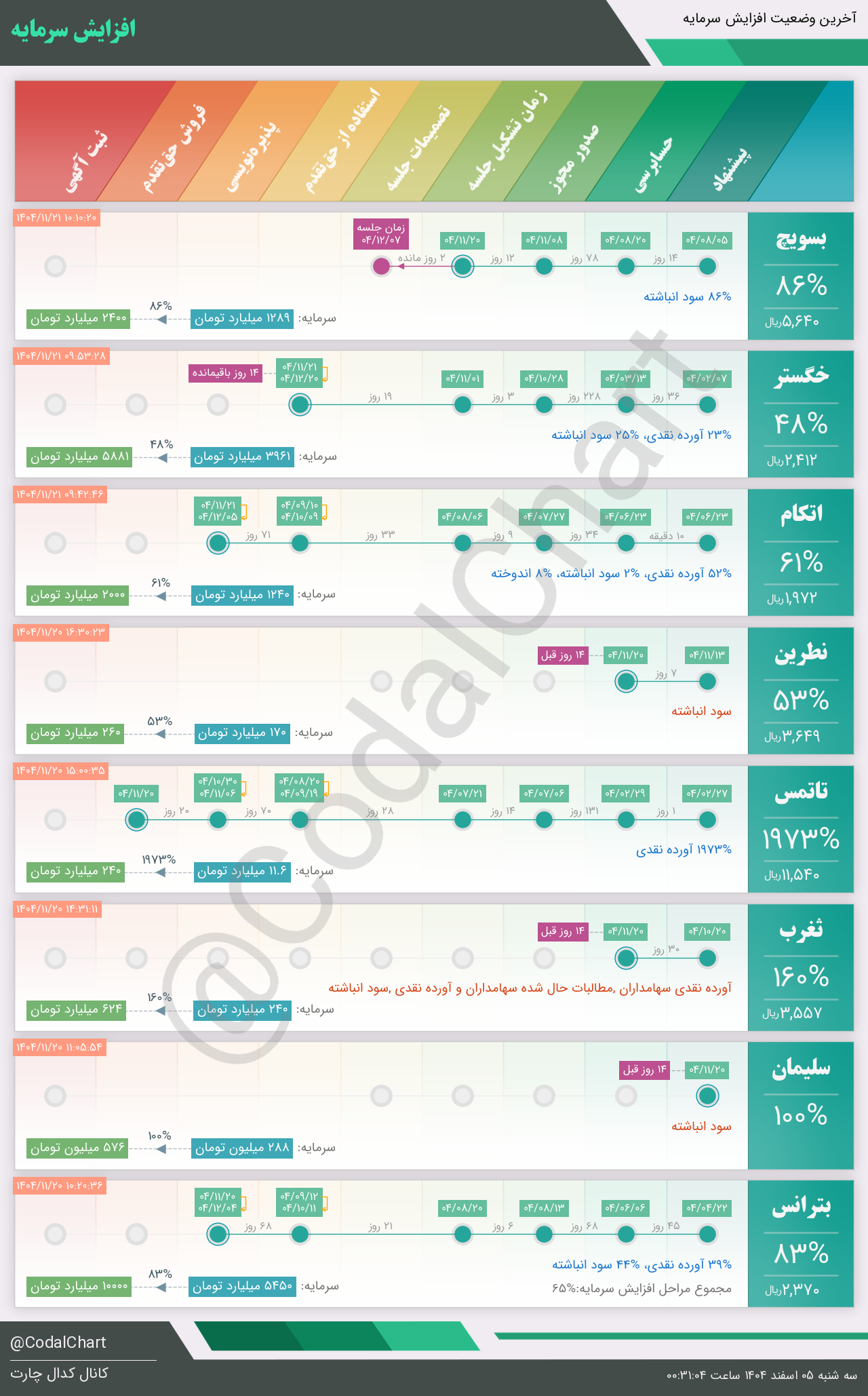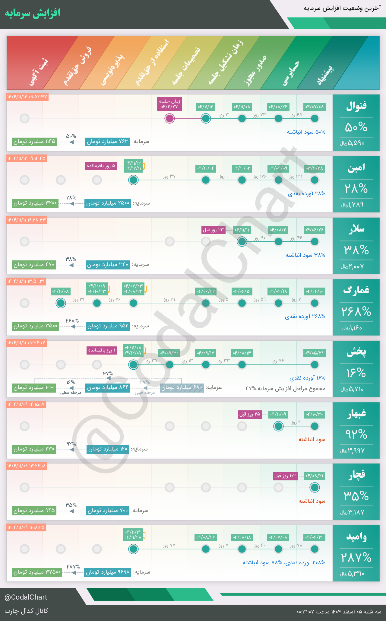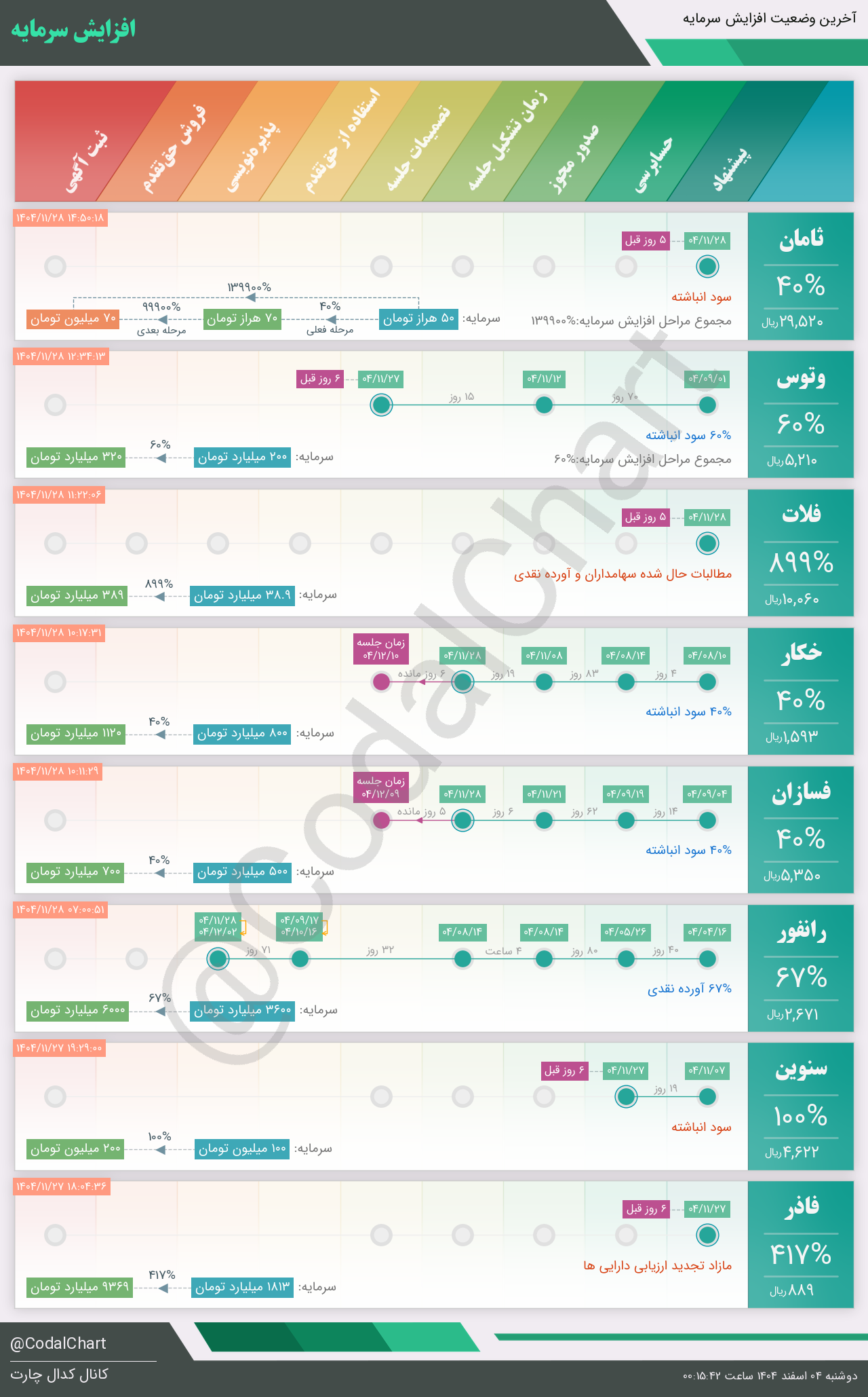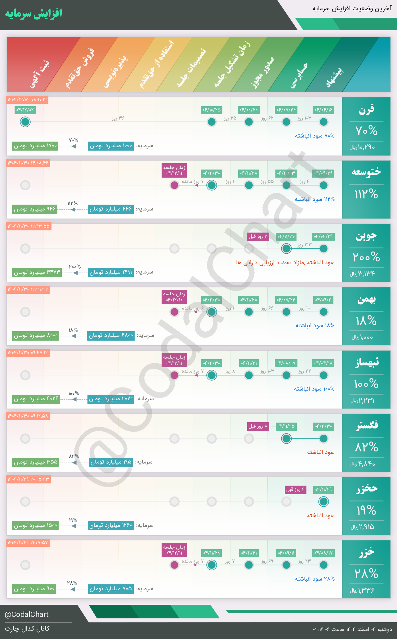لیست زیر کمتر از یک دقیقه پس از انتشار اطلاعیه در سامانه کدال بروز میگردد.