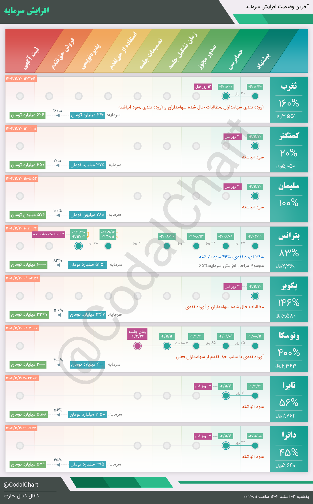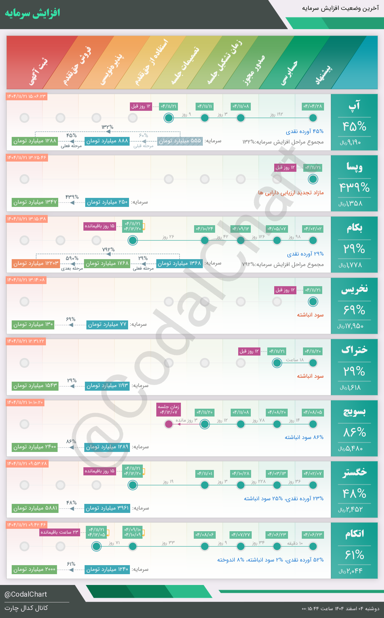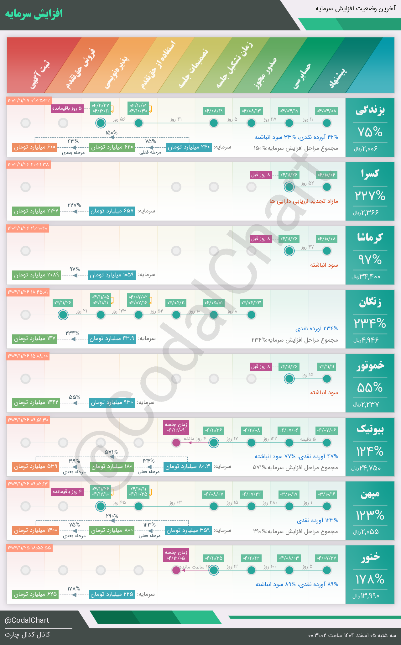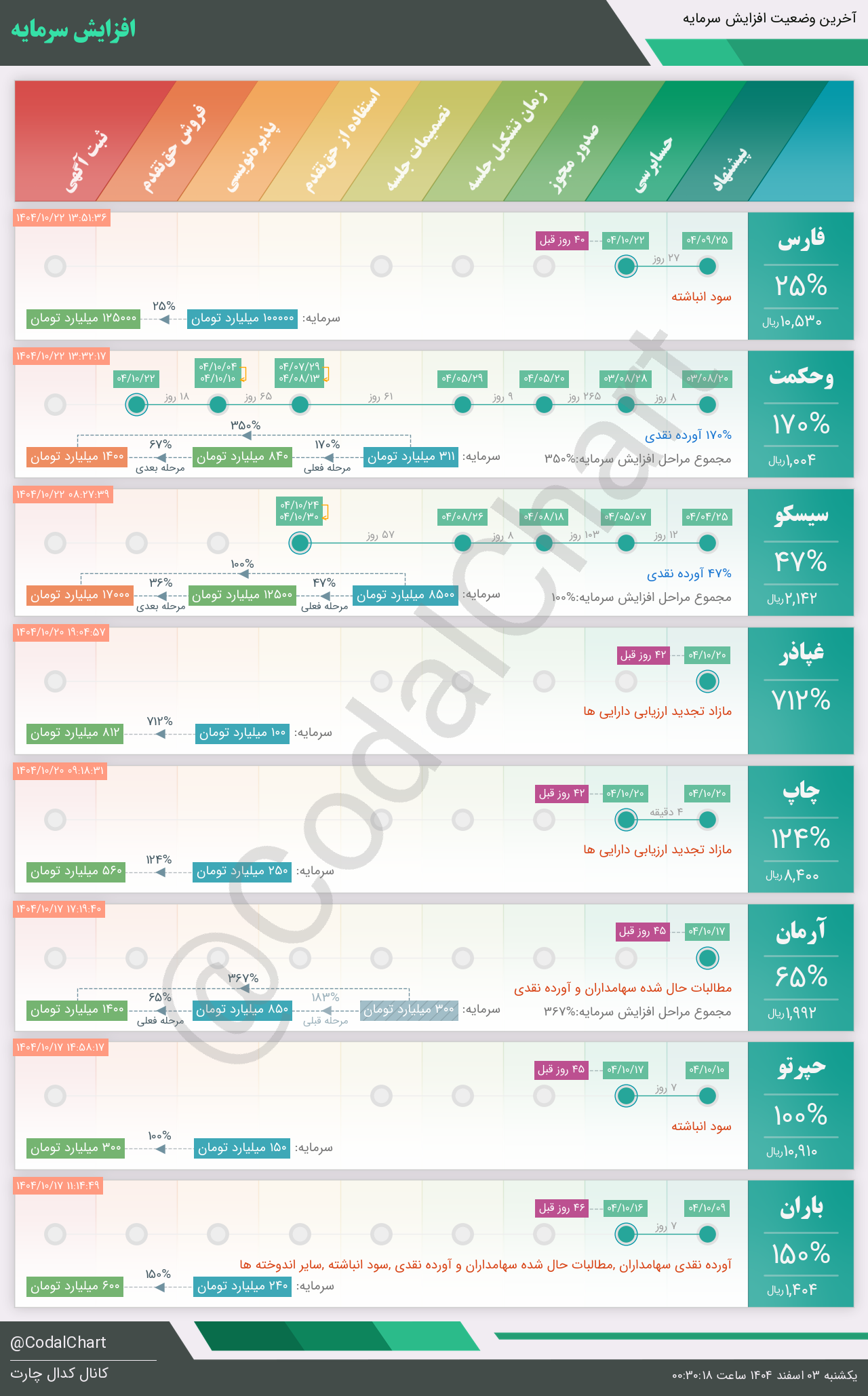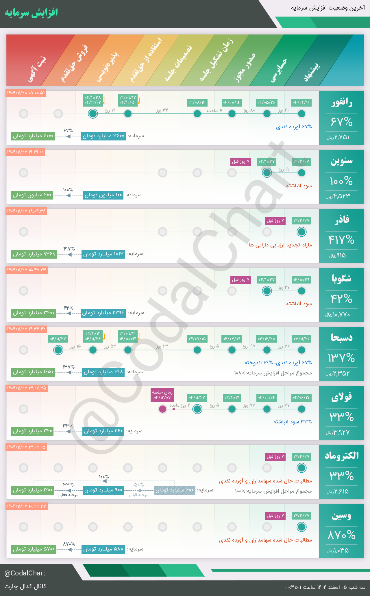 لیست زیر کمتر از یک دقیقه پس از انتشار اطلاعیه در سامانه کدال بروز میگردد.
