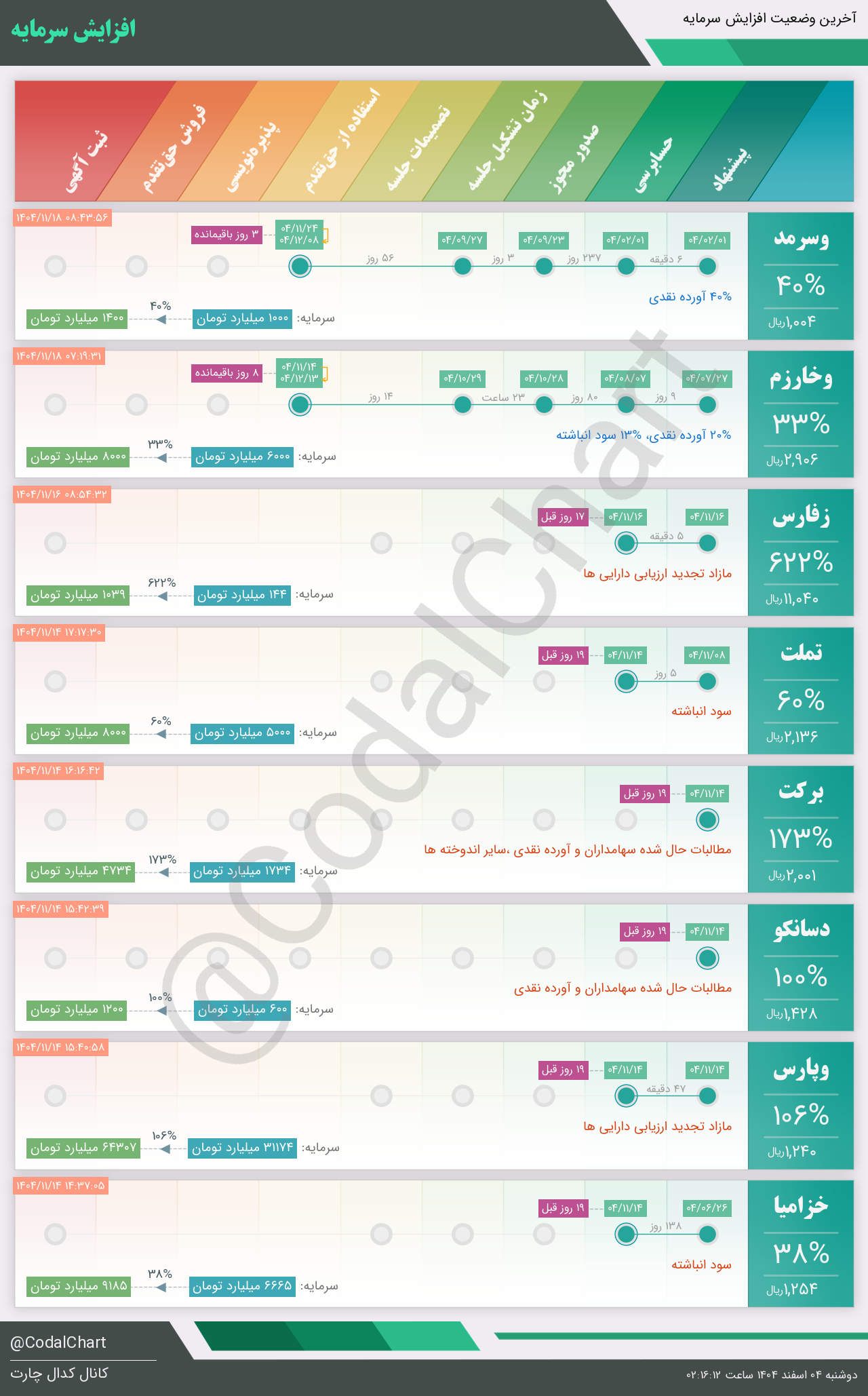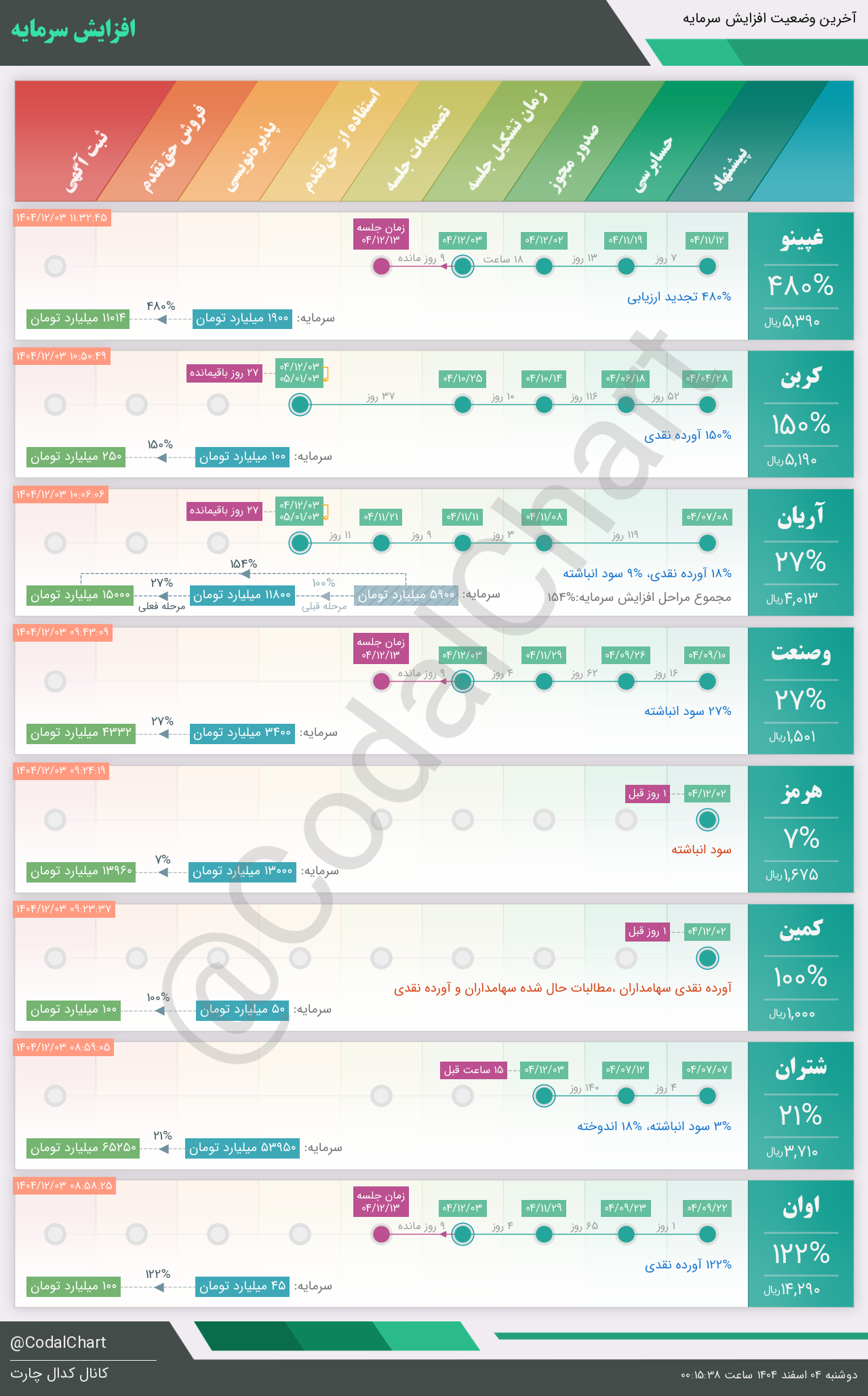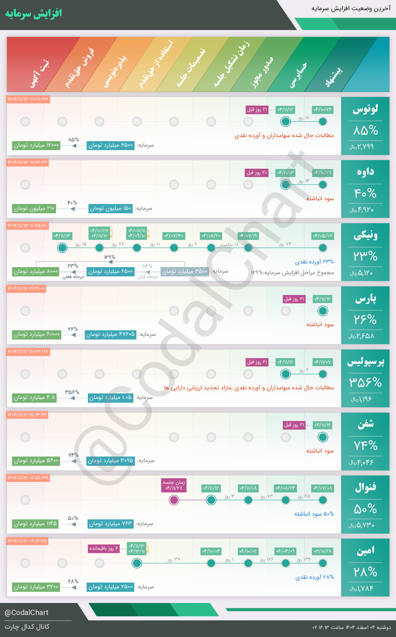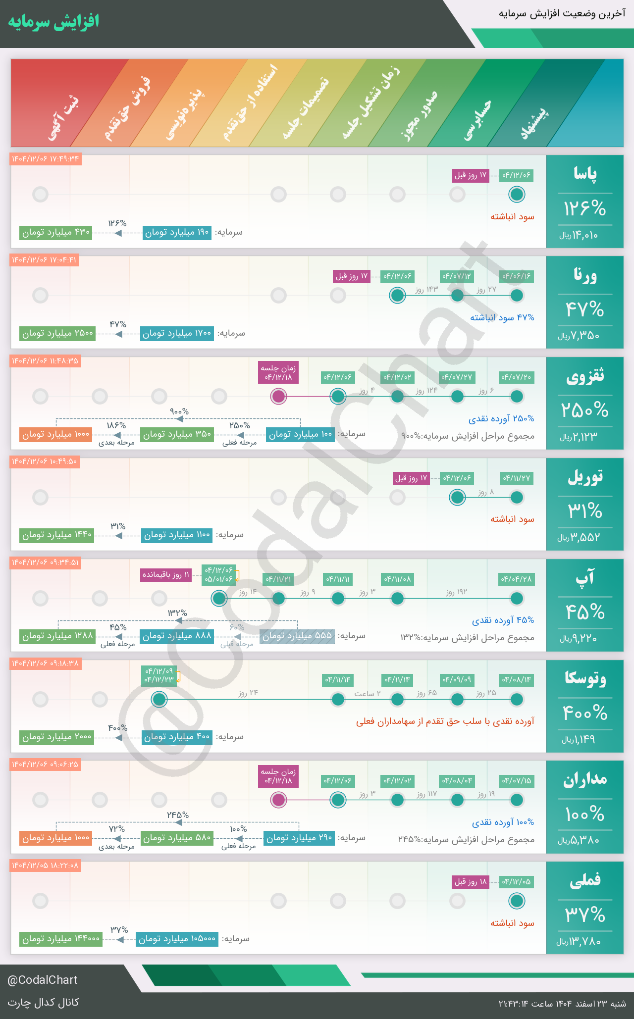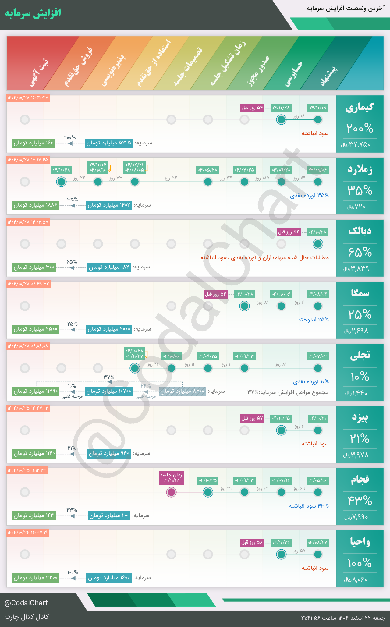 لیست زیر کمتر از یک دقیقه پس از انتشار اطلاعیه در سامانه کدال بروز میگردد.