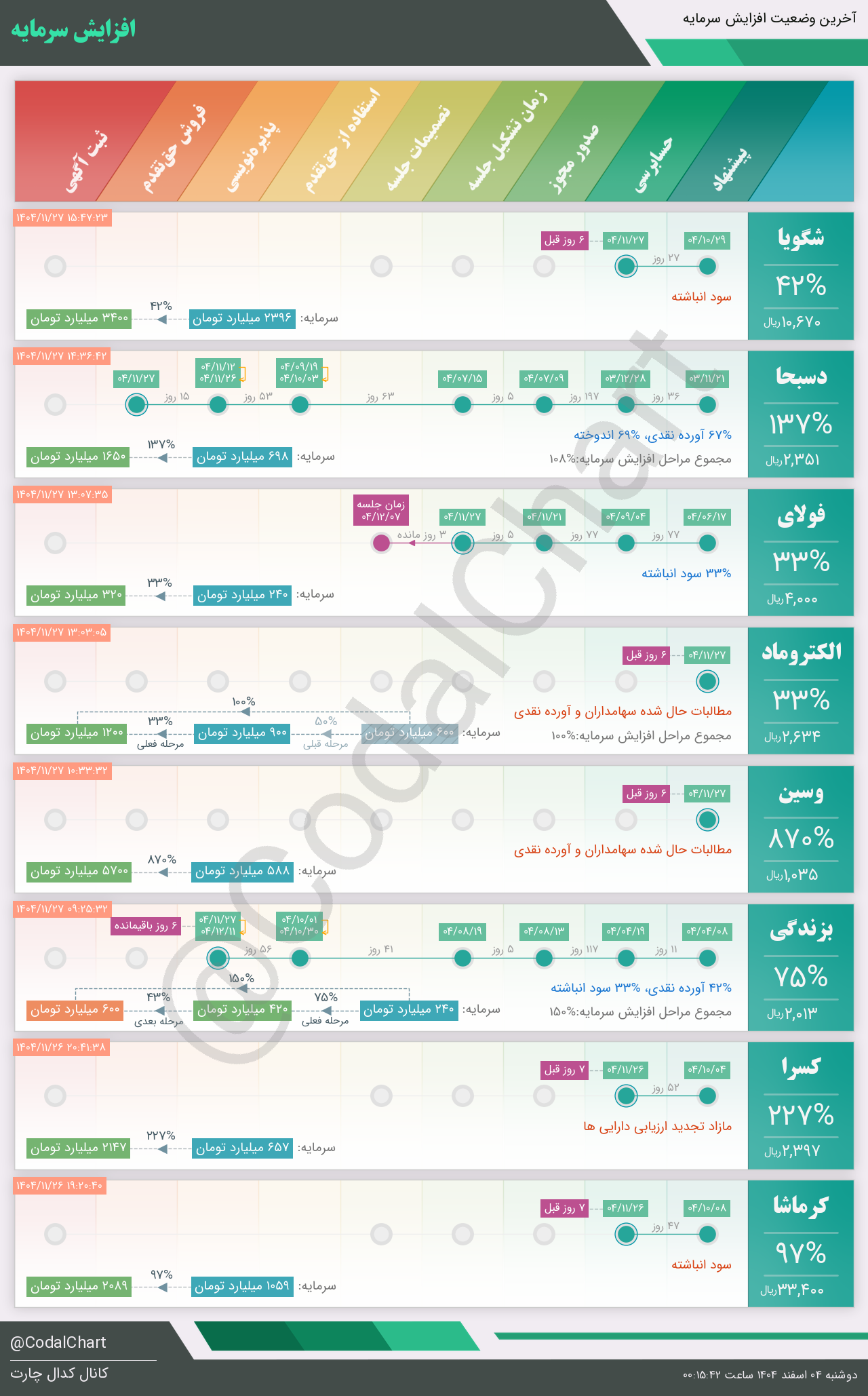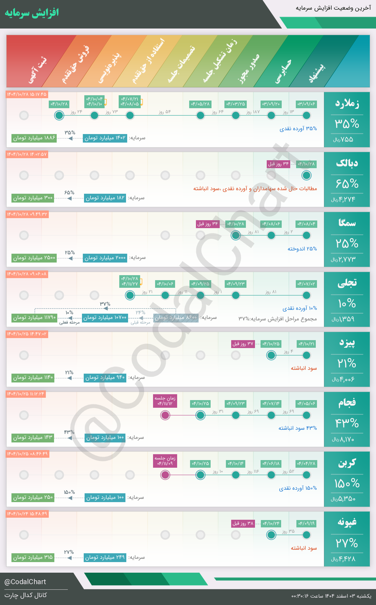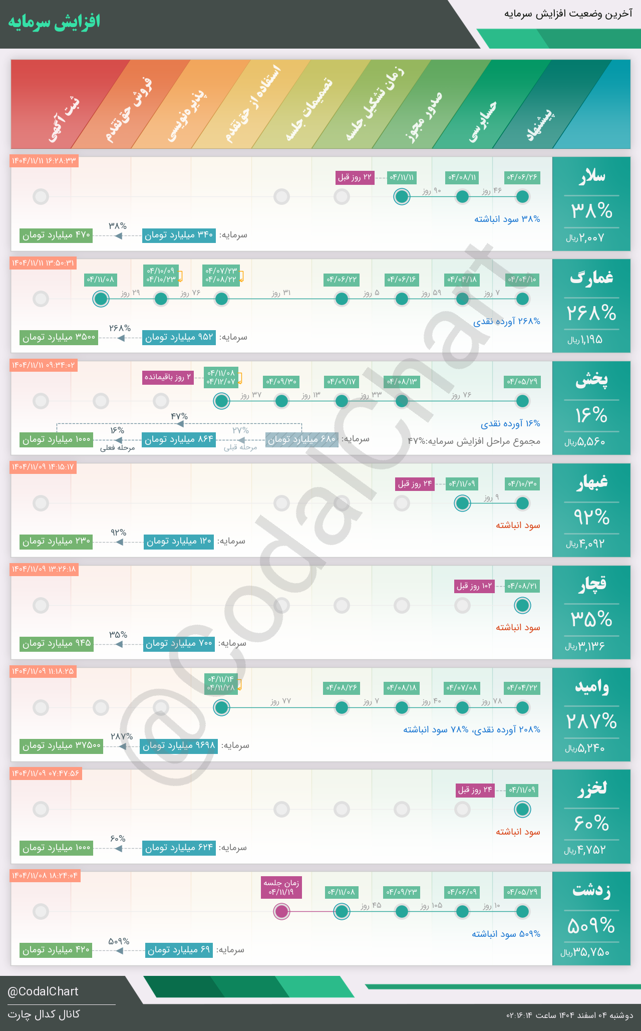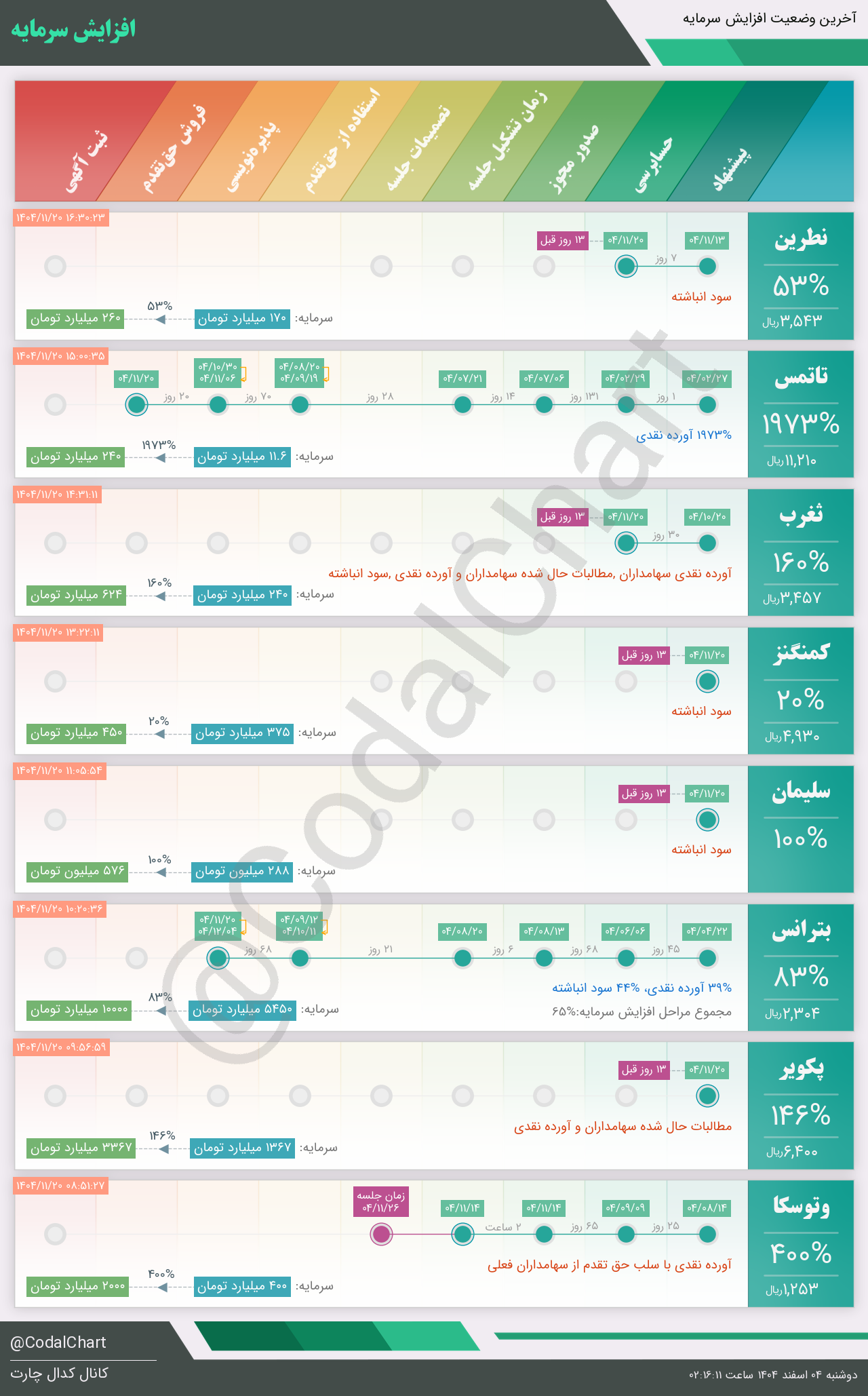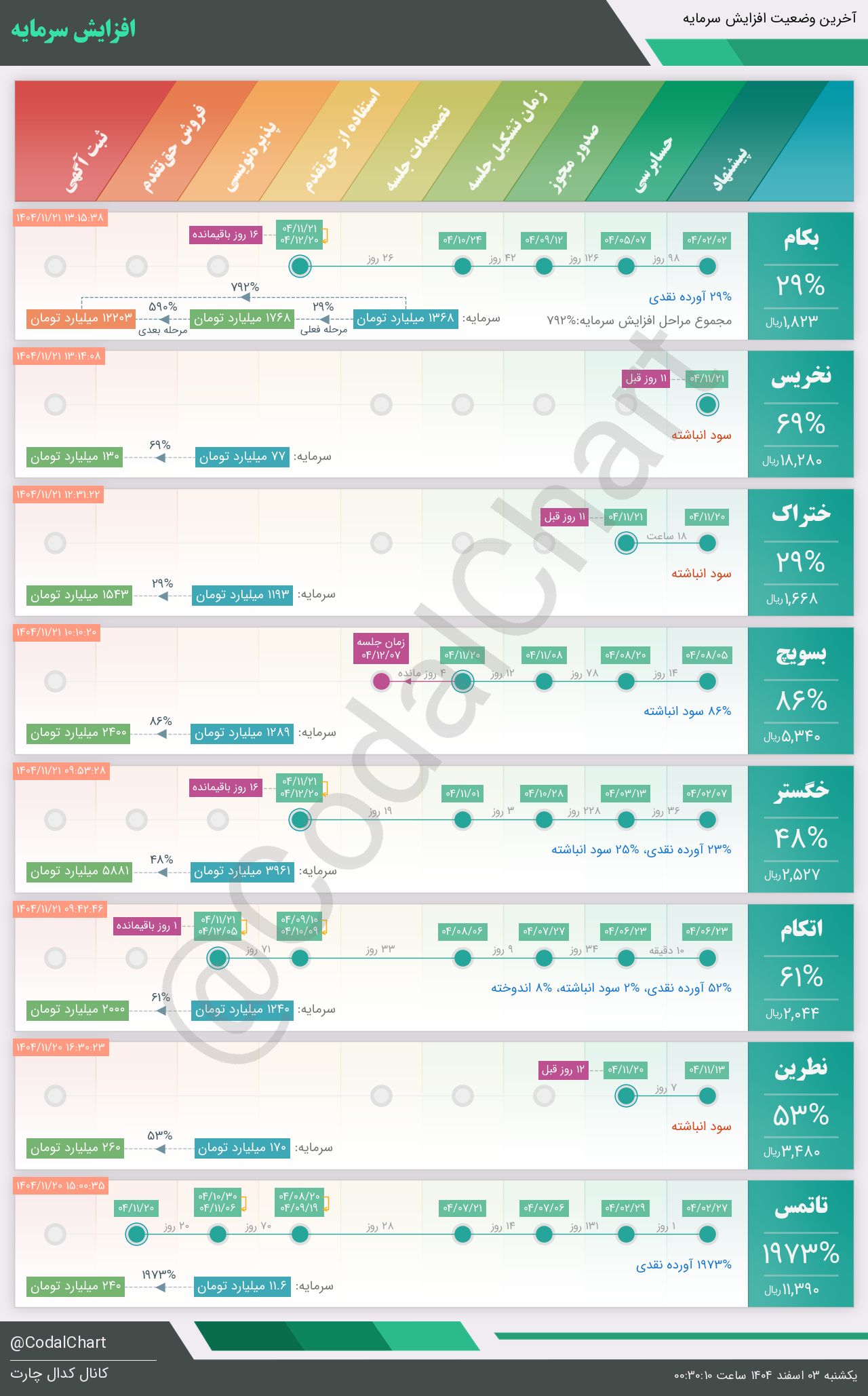 لیست زیر کمتر از یک دقیقه پس از انتشار اطلاعیه در سامانه کدال بروز میگردد.